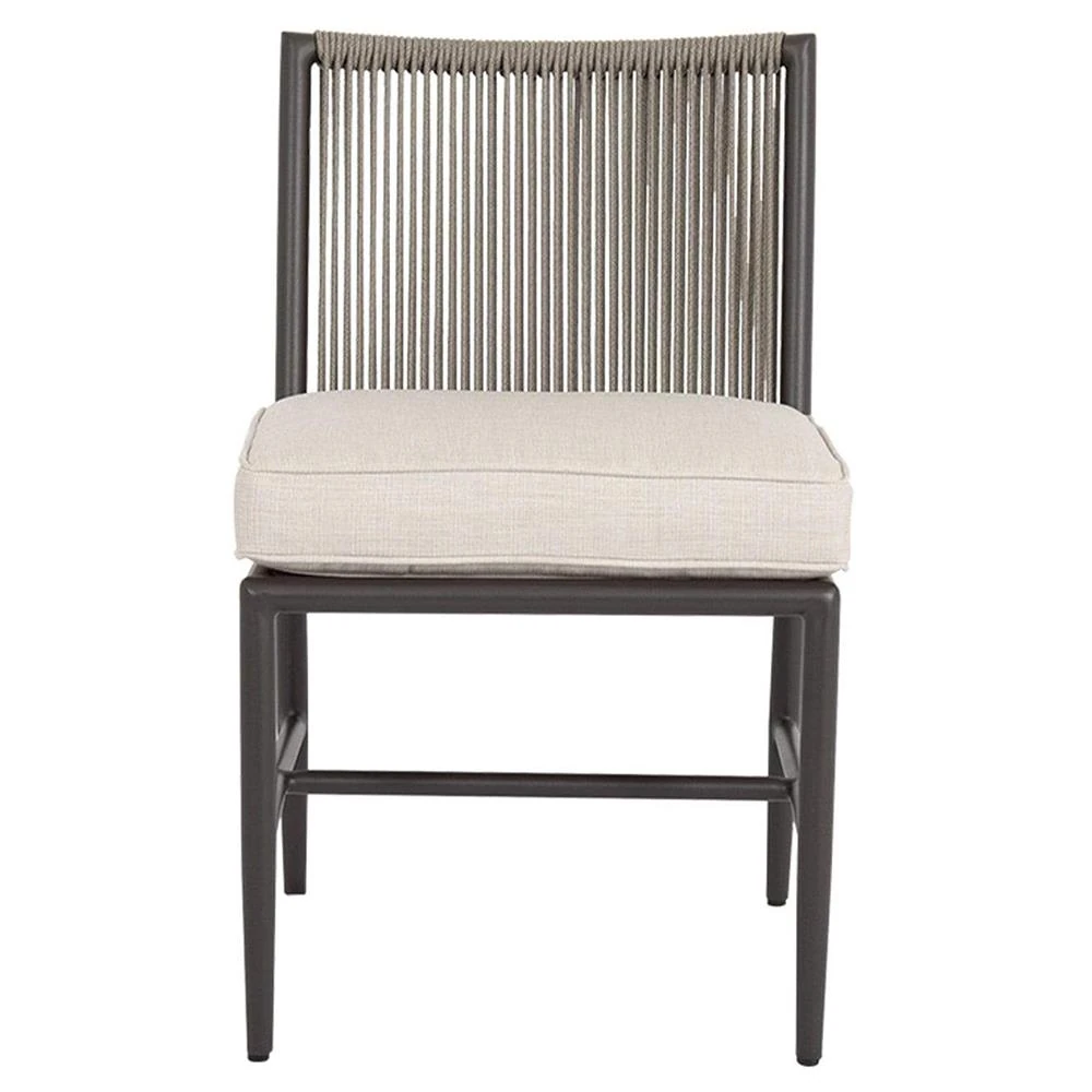 Aurora Mid Century Grey Aluminum Sunbrella Outdoor Dining Side Chair