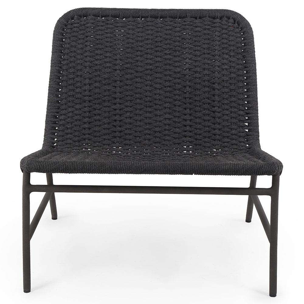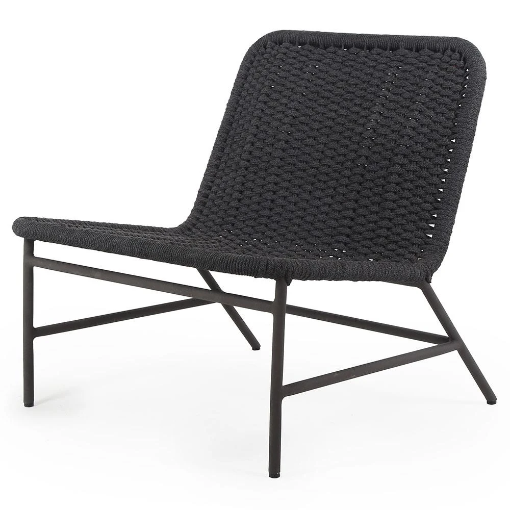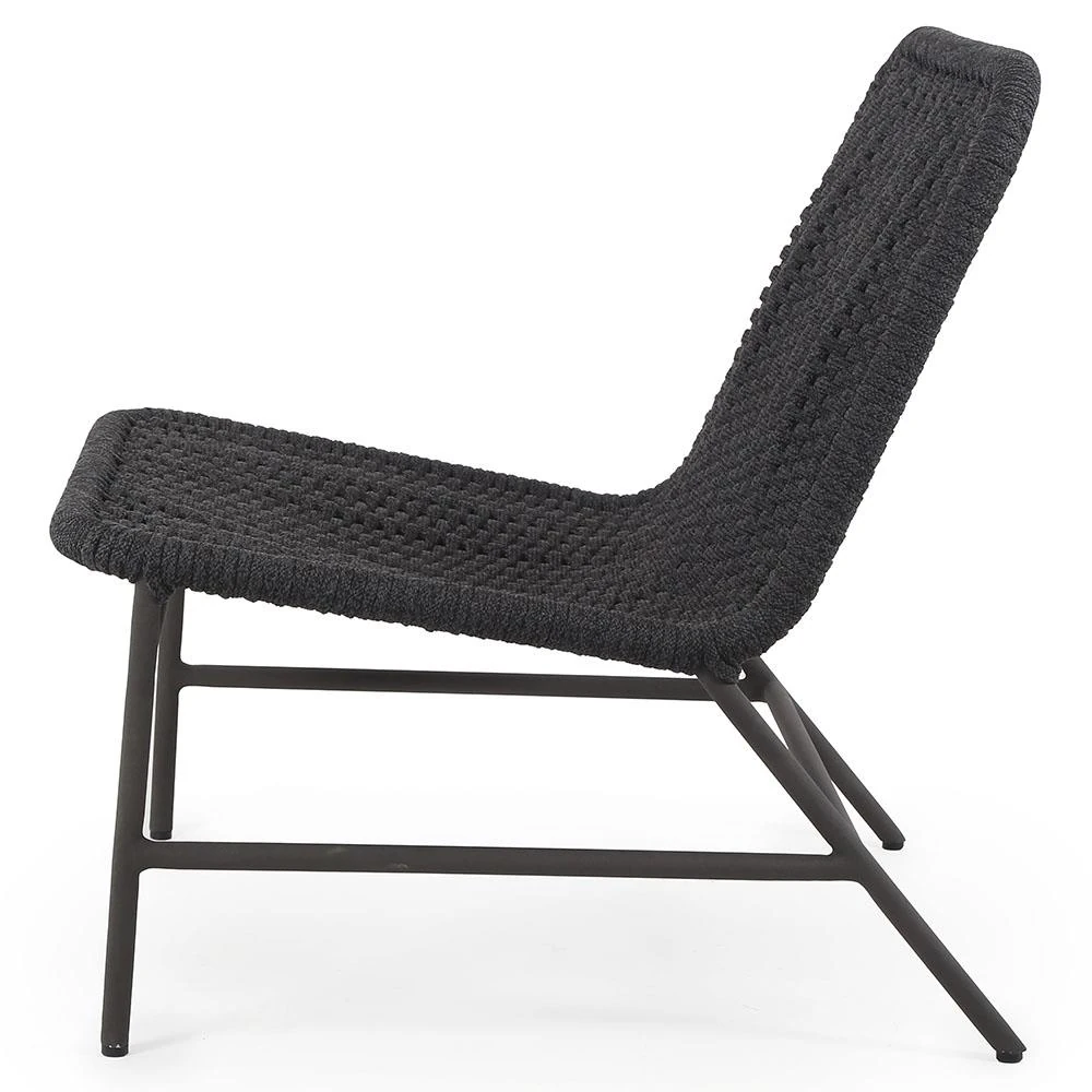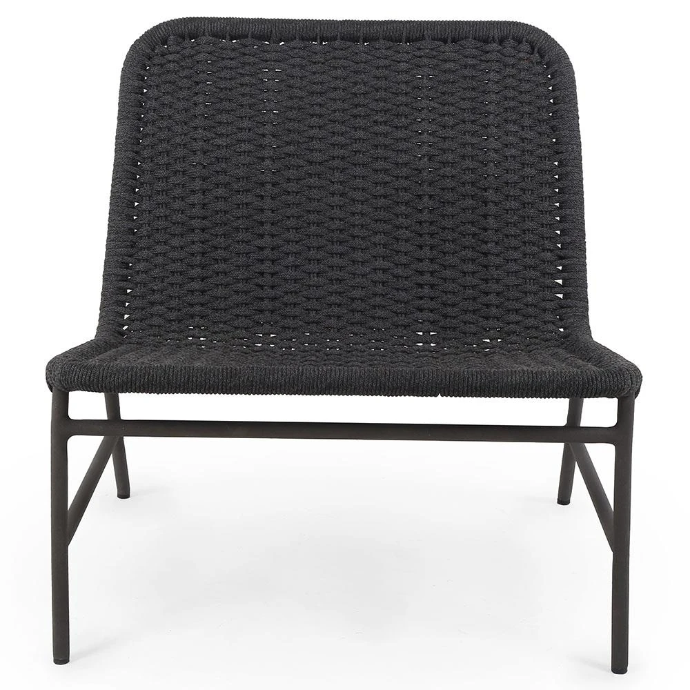 Ruben Coastal Beach Dark Grey Rope Black Aluminum Outdoor Lounge Side Chair