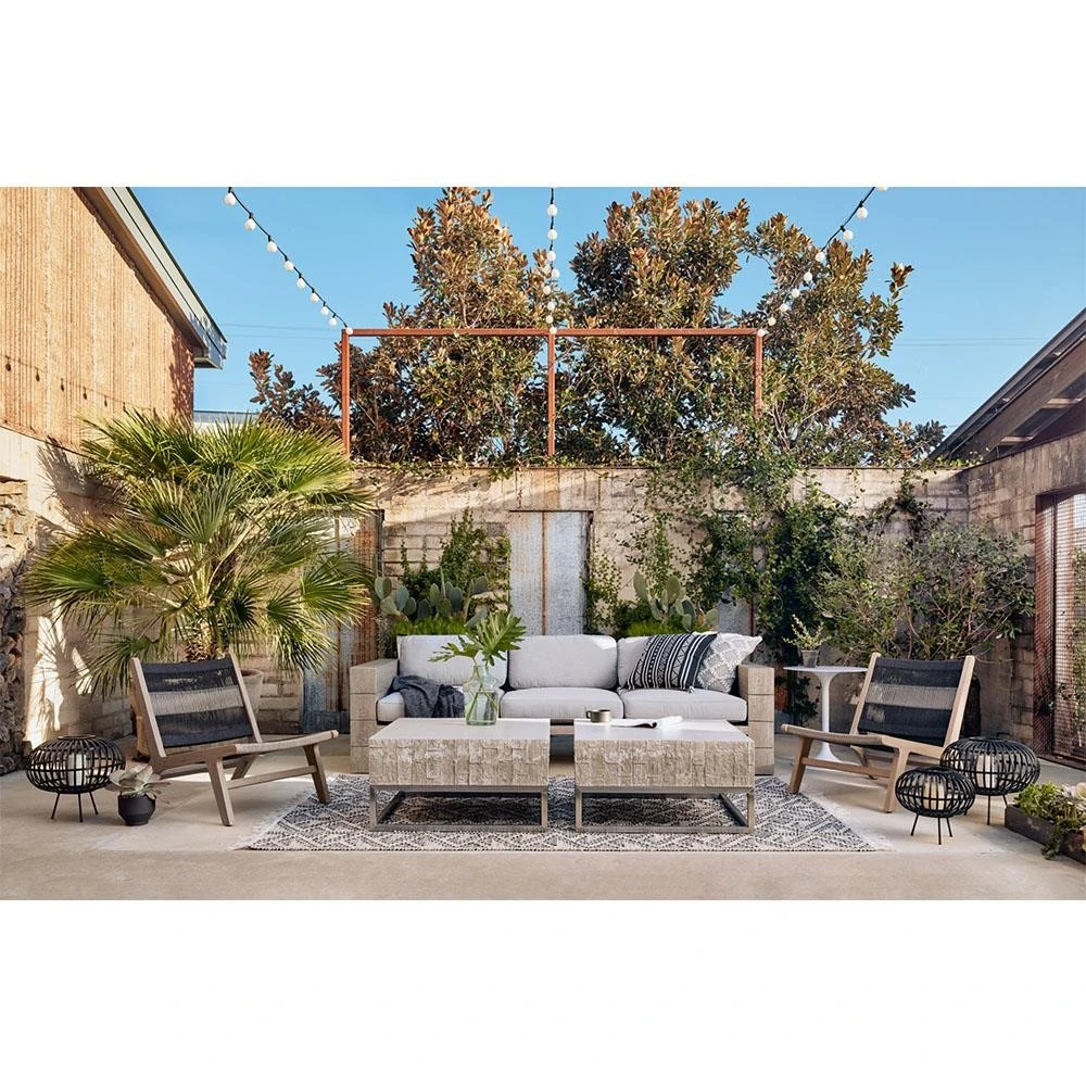 Liana Coastal Beach Grey Teak Wood Woven Rope Cushion Outdoor Lounge Chair