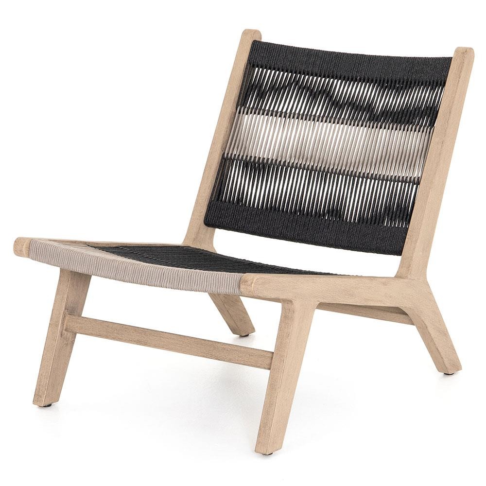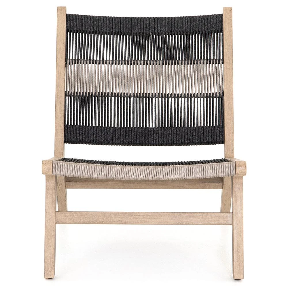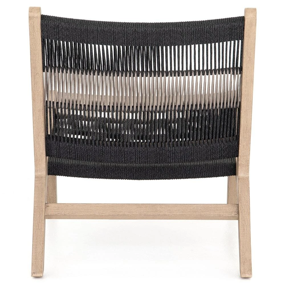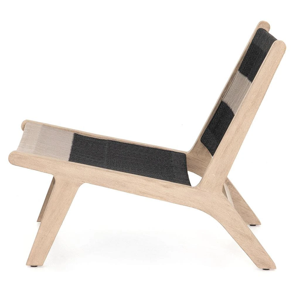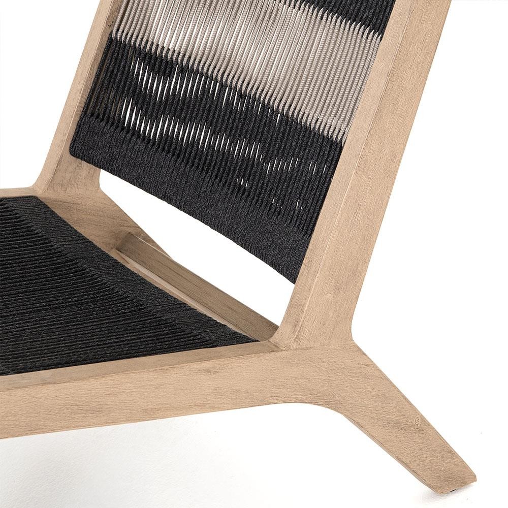 Liana Coastal Beach Teak Wood Dark Grey Woven Rope Cushion Outdoor Lounge Chair