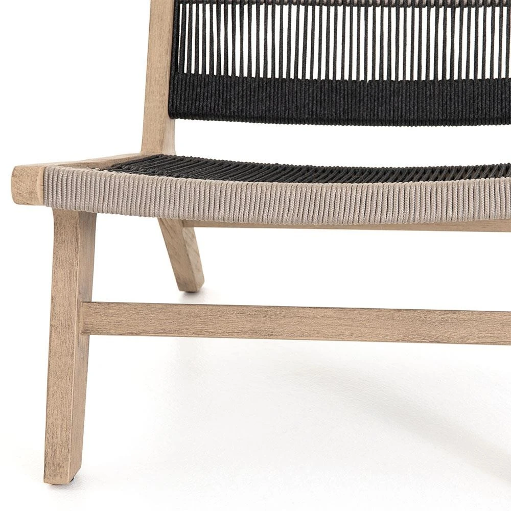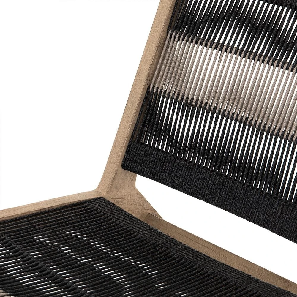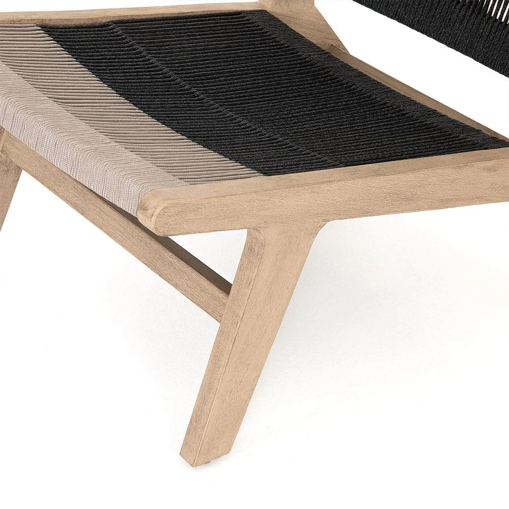 Liana Coastal Beach Natural Teak Wood Dark Grey Woven Rope Outdoor Chaise Lounge