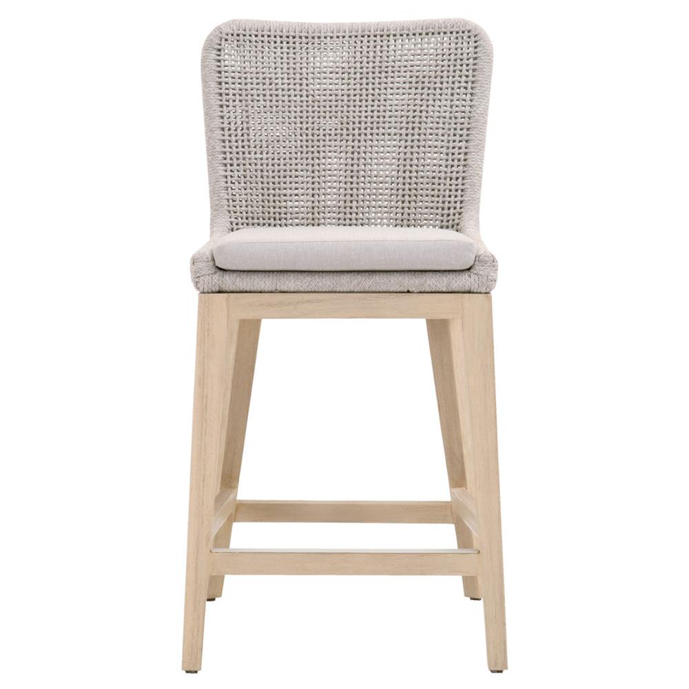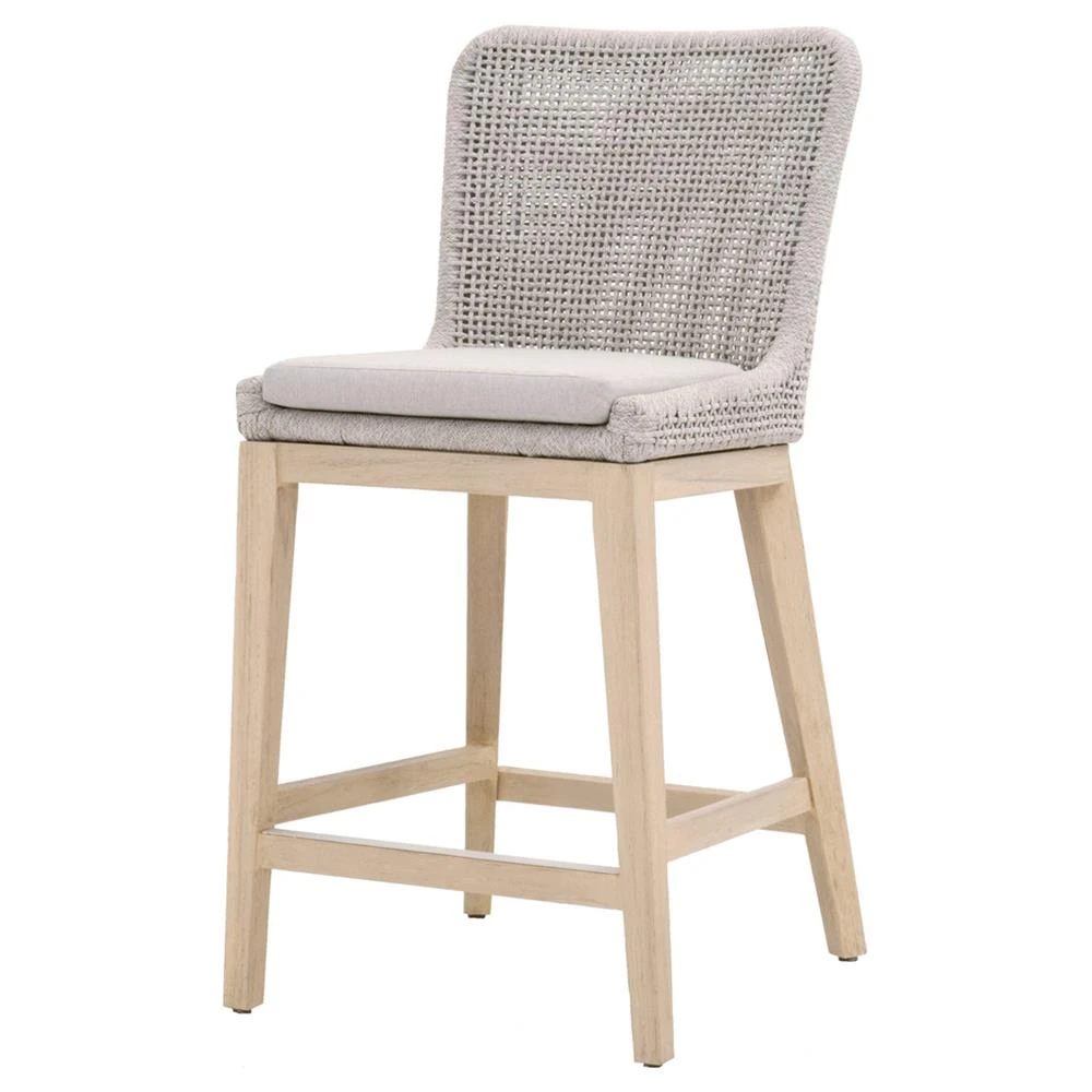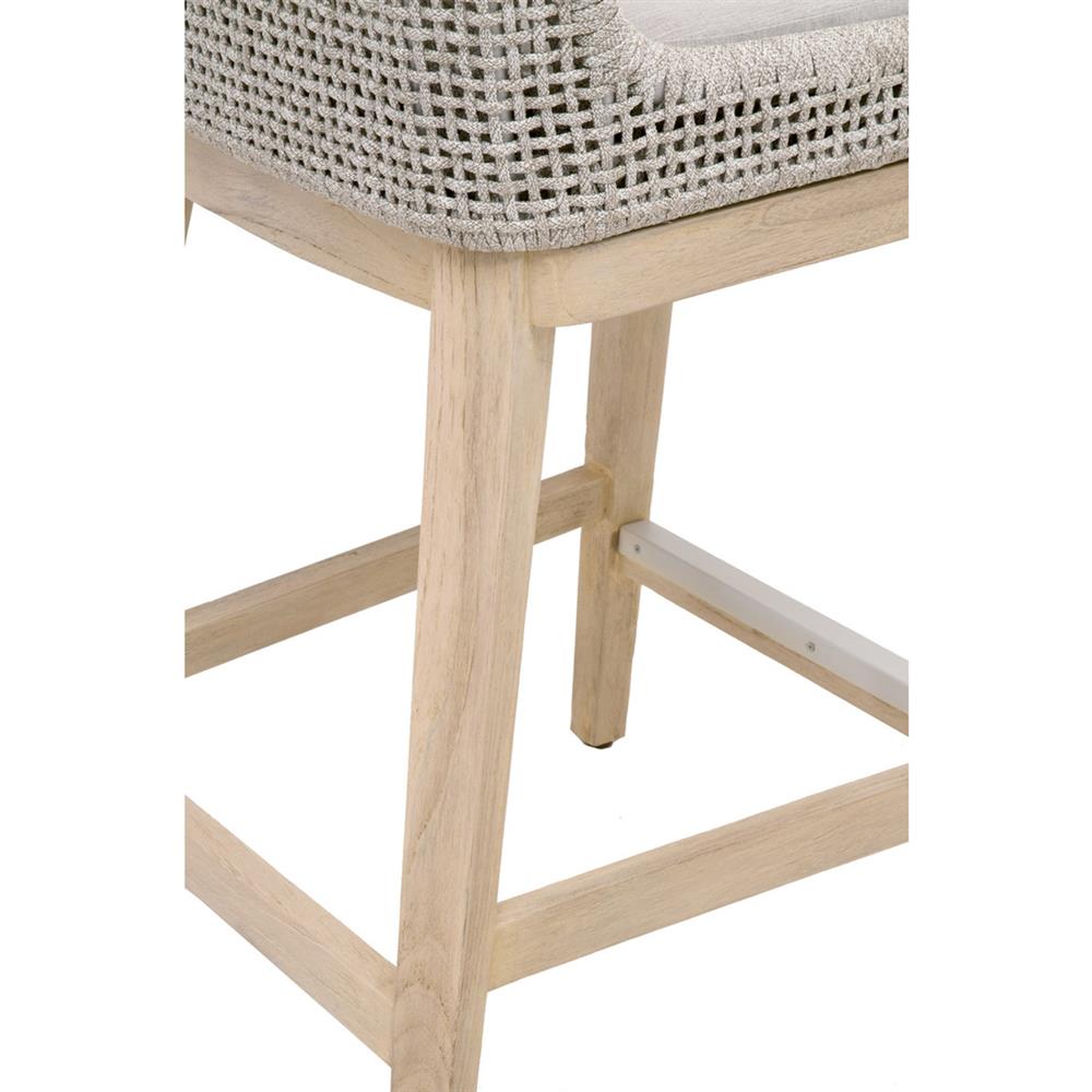 Kailey Coastal Taupe Woven Rope Grey Teak Outdoor Counter Stool