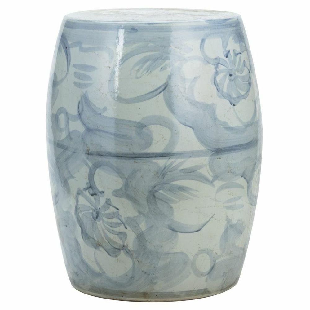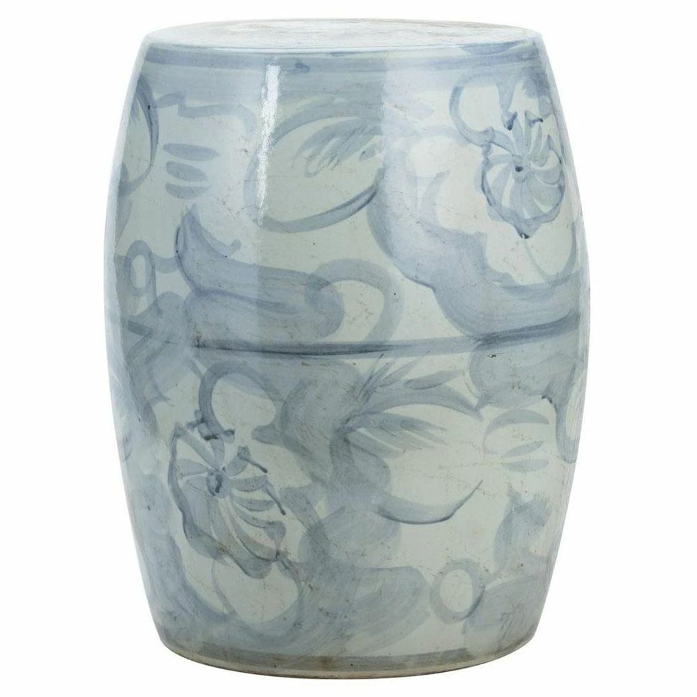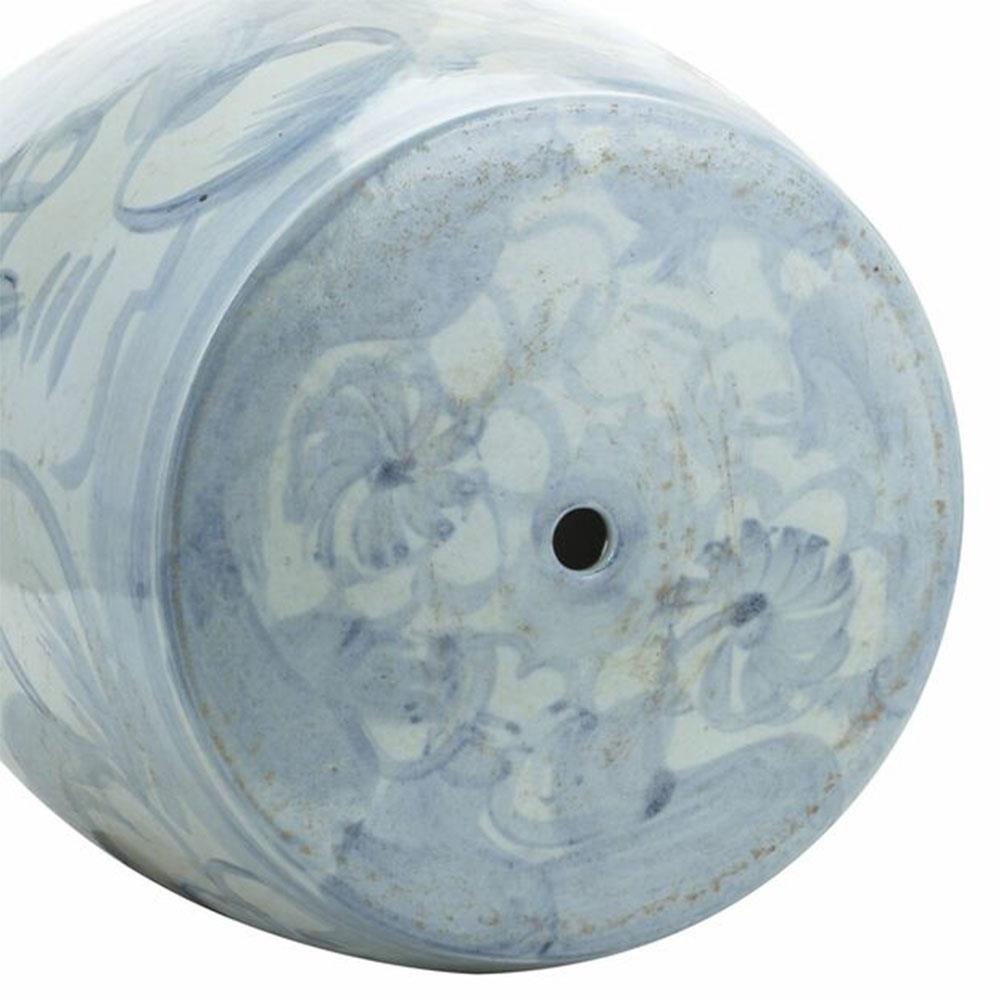 Beck Modern Blue and White Porcelain Twisted Flower Outdoor Garden Stool