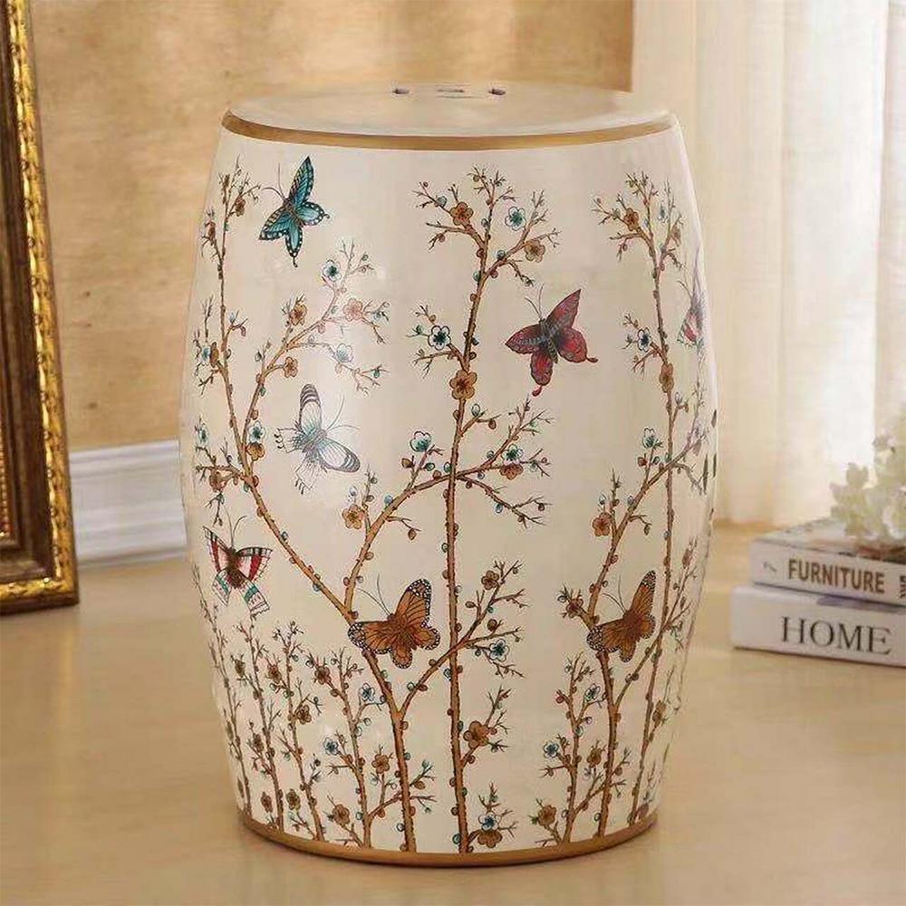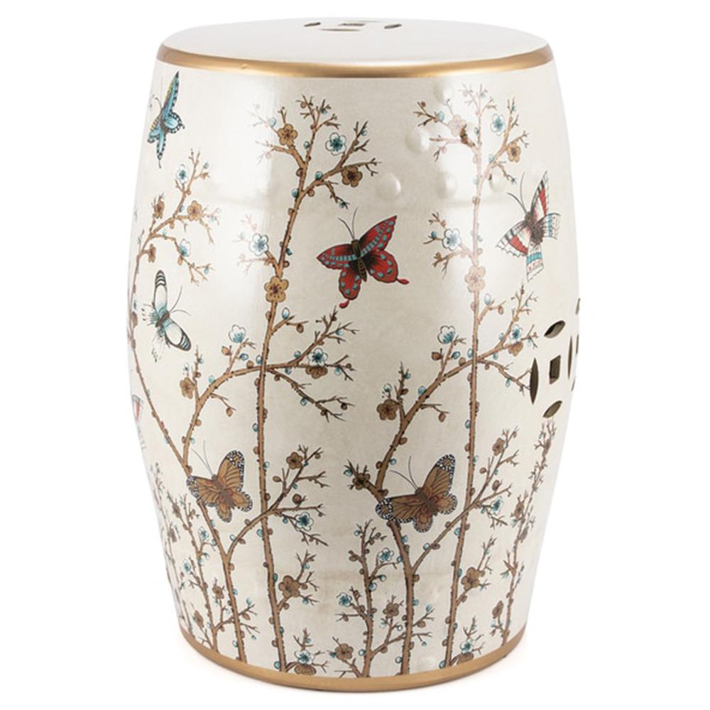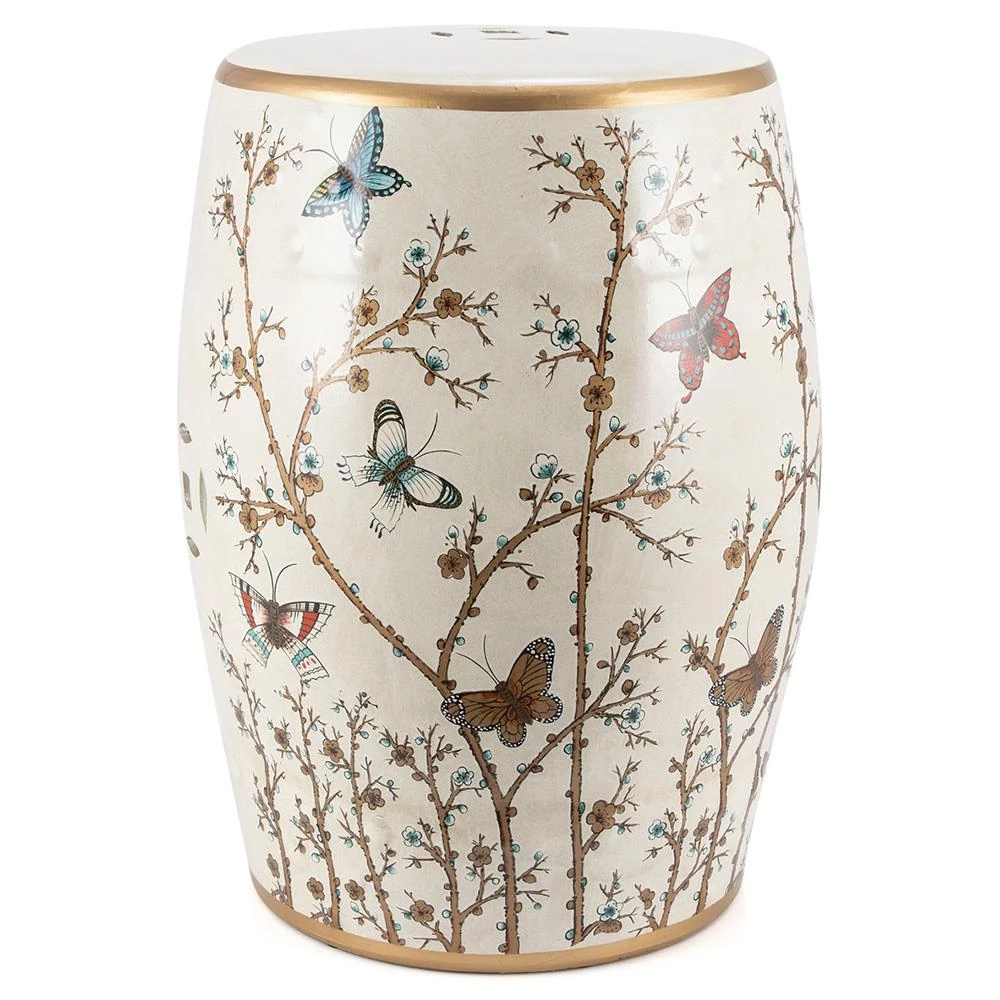 Maria Modern Classic French White Porcelain Butterfly Outdoor Garden Stool