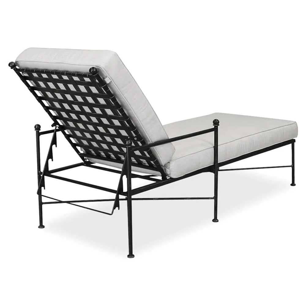 Indulge in the effortless luxury of the Aurore chaise lounge. Finished in antique black, the wrought-iron frame features an X-stretcher ... more