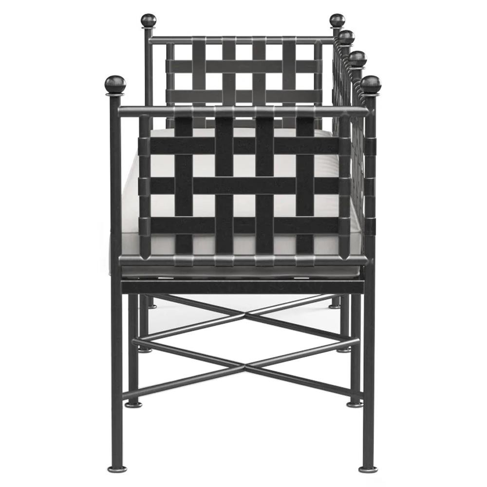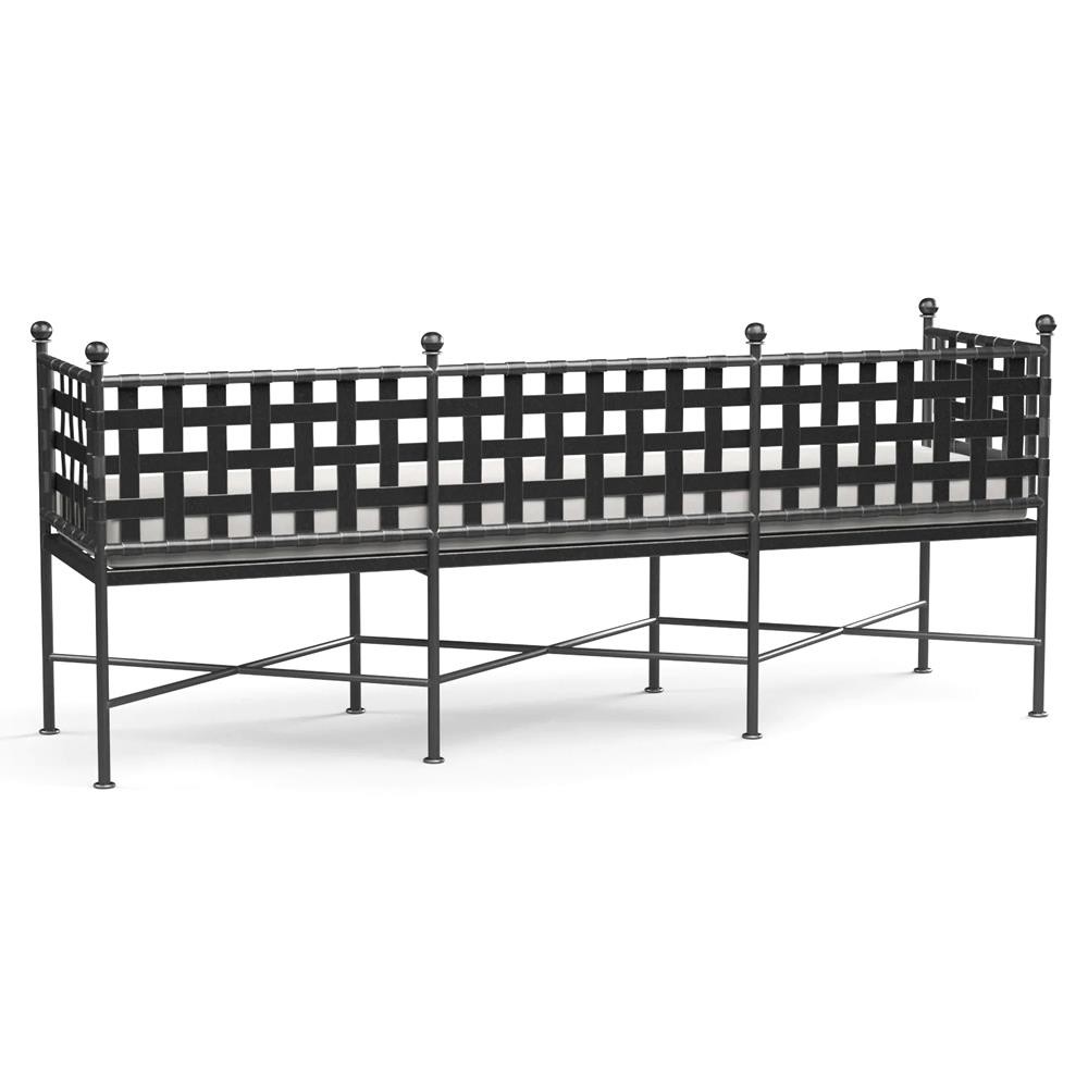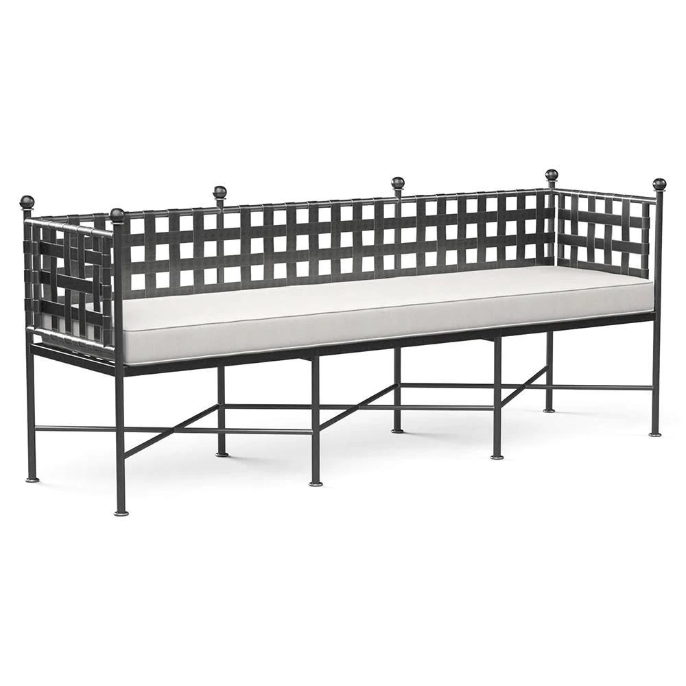 • Madelle Modern Classic White Sunbrella Black Aluminum Outdoor Dining Bench|Kathy Kuo Home