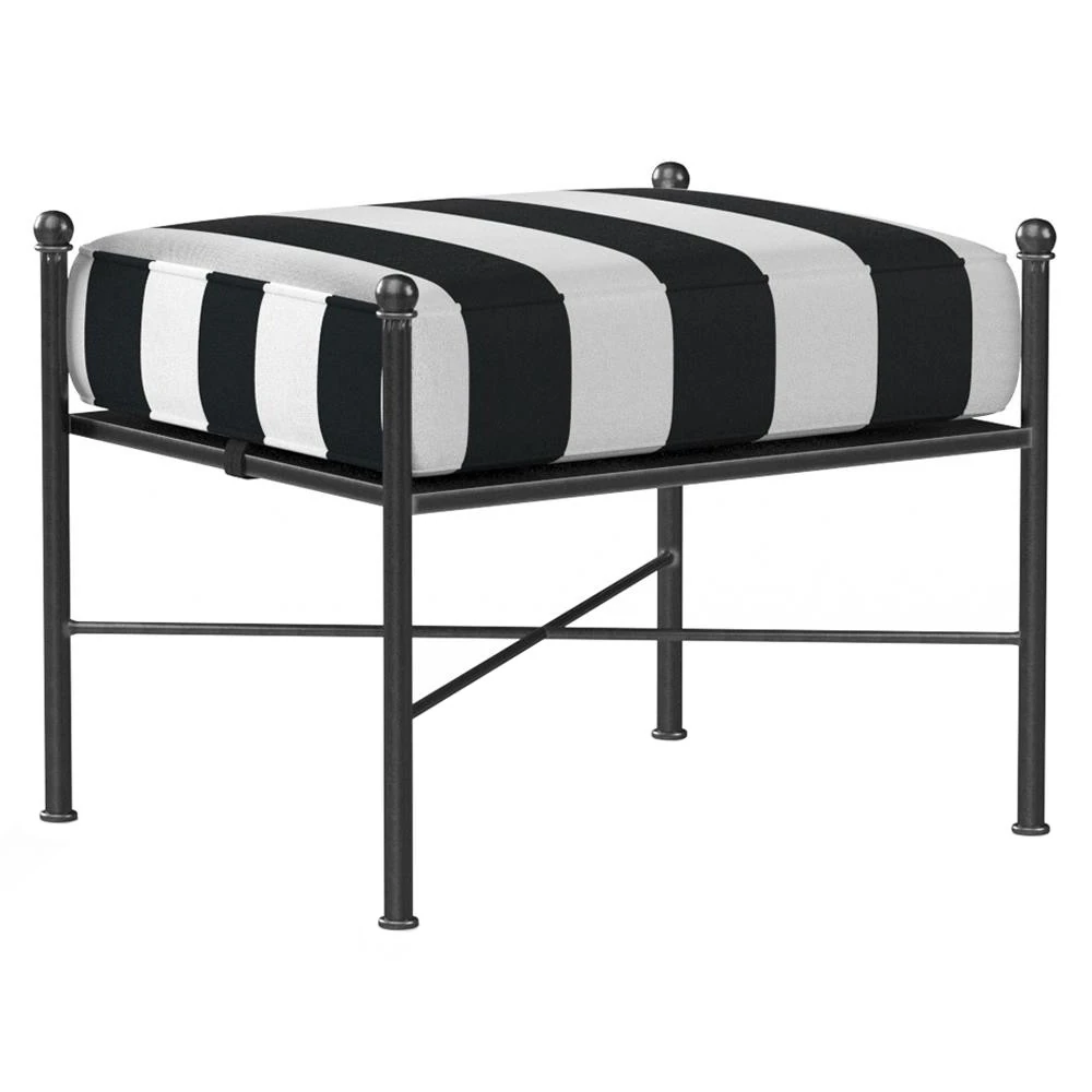 Aurore White Black Stripe Cabana Cushion Metal Outdoor Ottoman