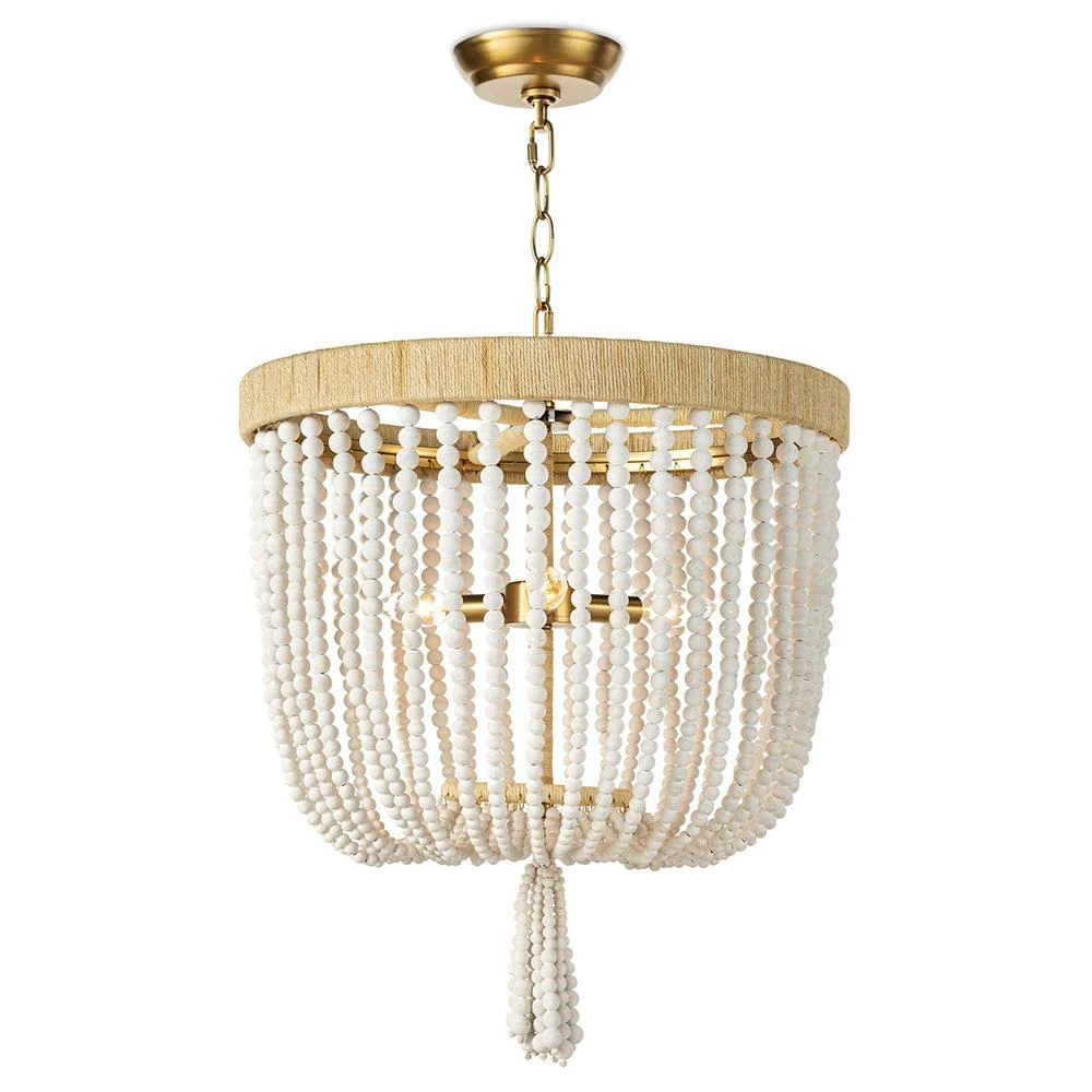 • Palecek Paloma Coastal Beach White Coco Beaded Chandelier|Kathy Kuo Home