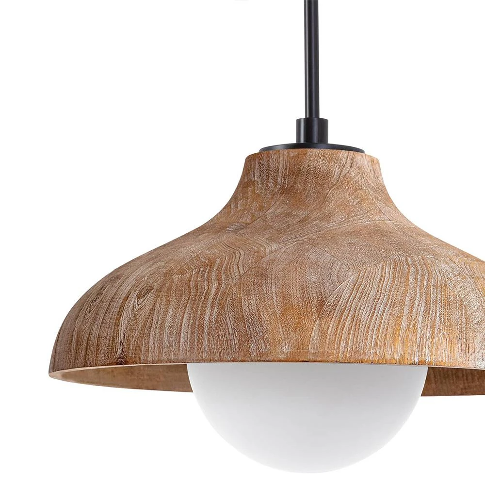 • Features a white-washed limed oak finish creates a relaxed look and brings out the wood grain texture of this fixture's sleek shade