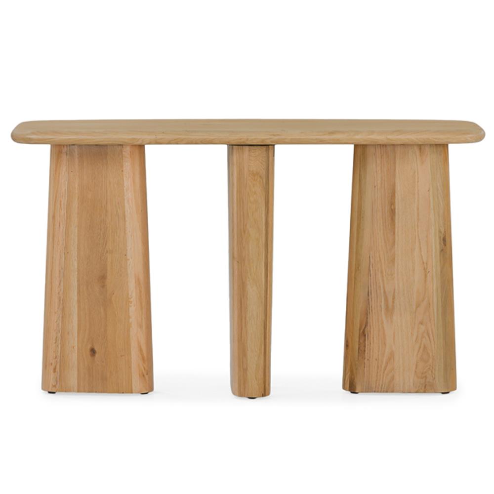 Laura Rustic Lodge Brown Oak Wood Round Edge Console Table