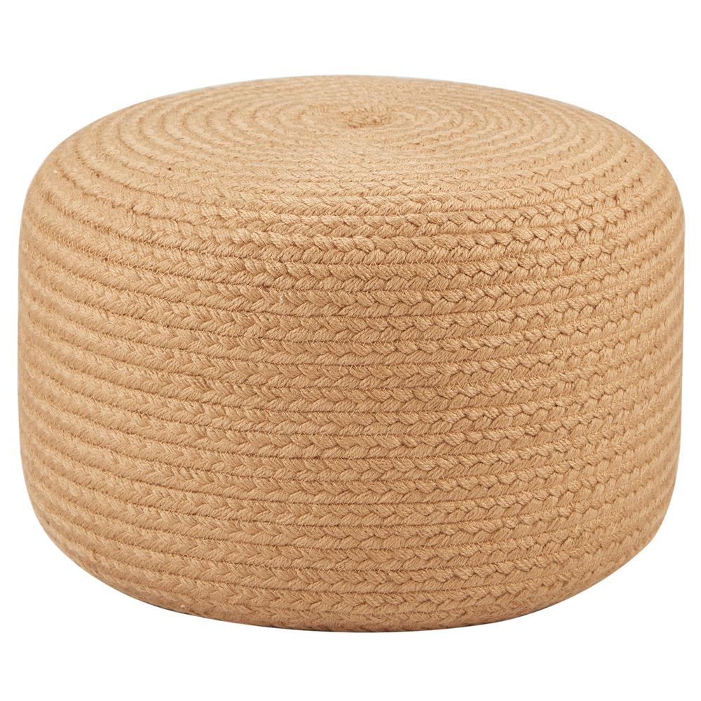 Easton Coastal Beach Beige Woven Jute Round Pouf