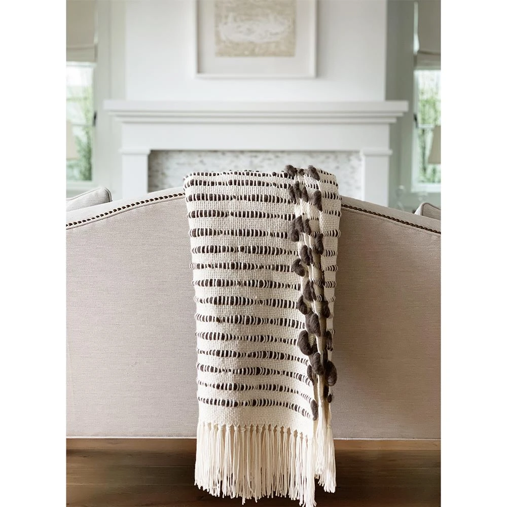 Pampa Merino Modern White Wool Brown Striped Handwoven Throw Blanket