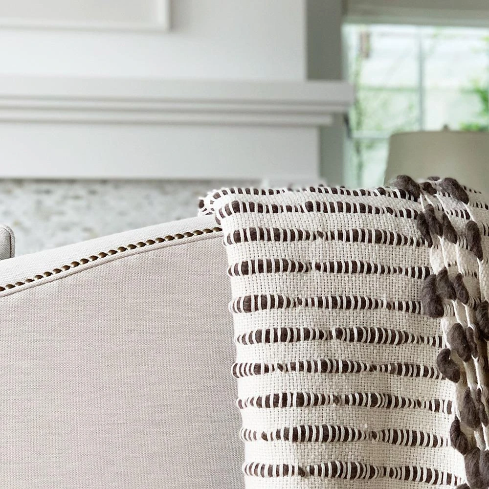 • Yvonne Updated Traditional Beige Cotton Woven Throw Blanket|Kathy Kuo Home