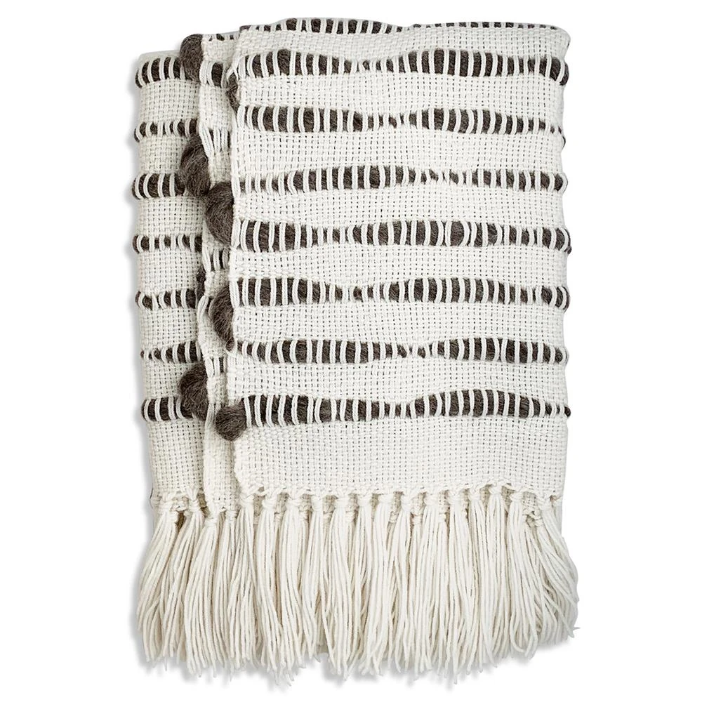 Mateo Coastal Beach Natural Cream Striped Woven Throw Blanket