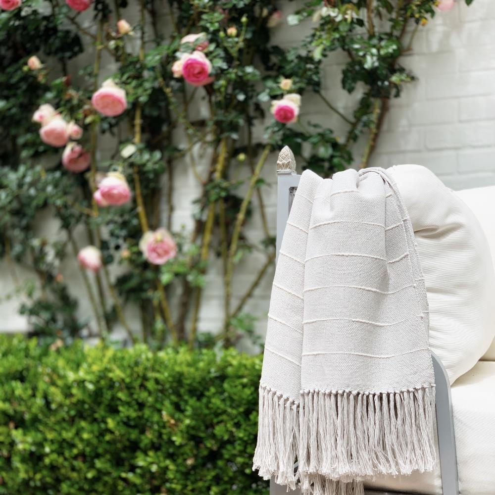 • Mateo Coastal Beach Natural Cream Striped Woven Throw Blanket|Kathy Kuo Home
