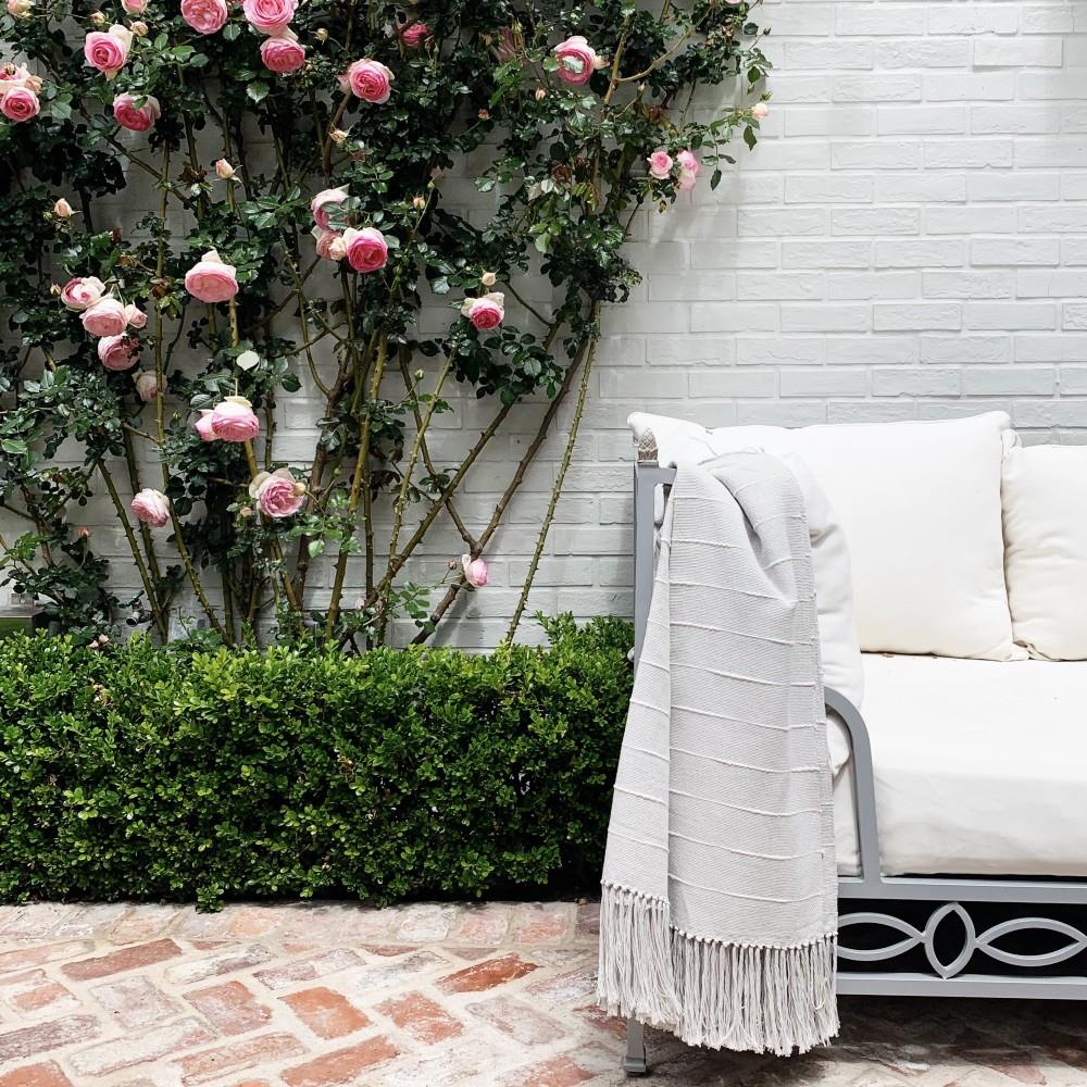 • Sojourn Global Grey Patterned Ivory Cotton Throw Blanket|Kathy Kuo Home