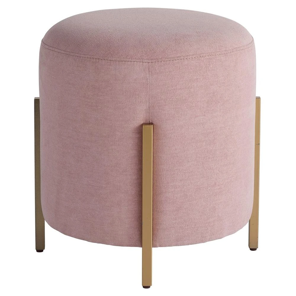 Riya Hollywood Regency Pink Cushion Gold Metal Round Pouf