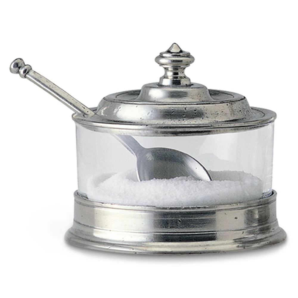 MATCH Modern Pewter Lid Clear Glass Condiment Bowl and Spoon