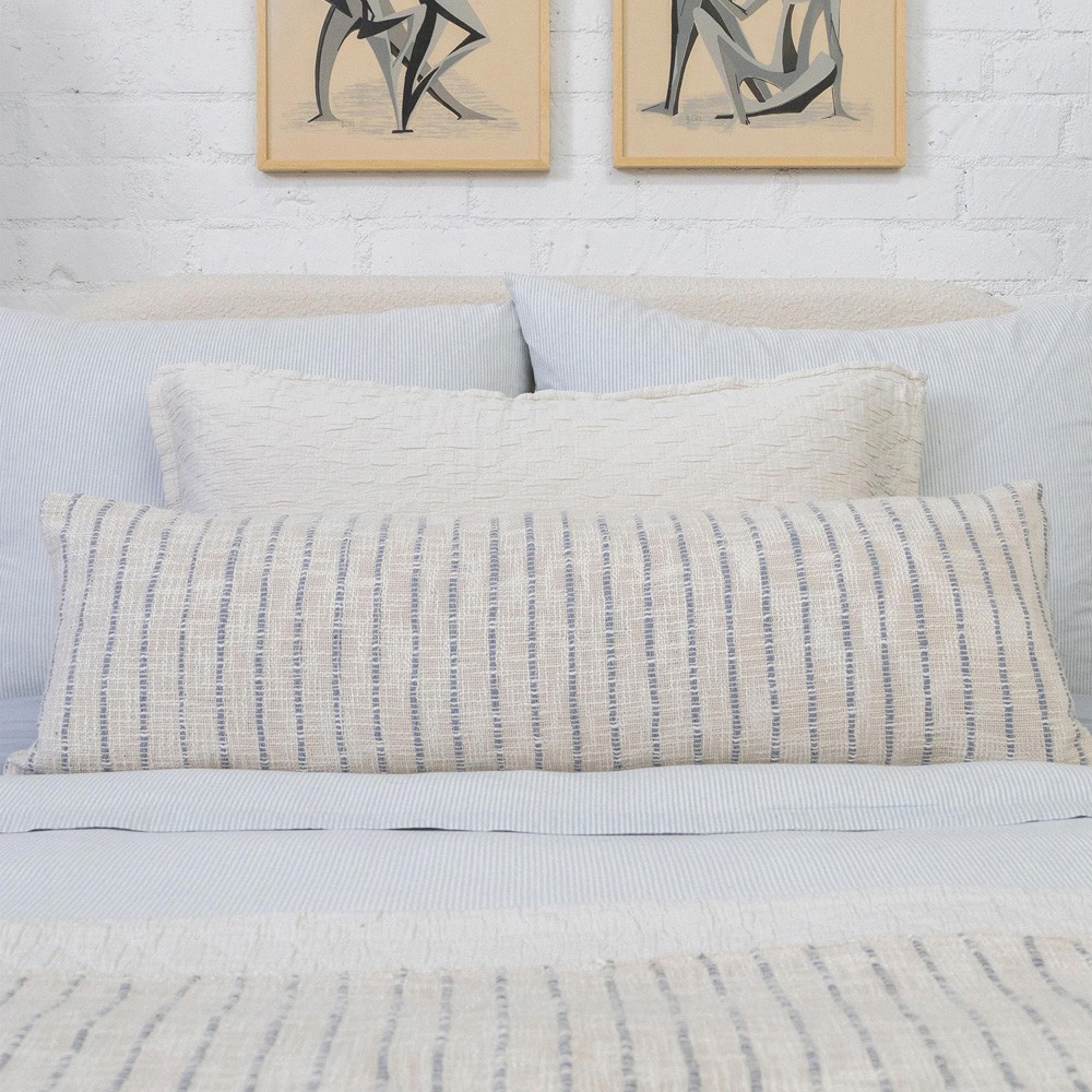 • Jojo Coastal Beach Walnut Brown Cotton Striped Lumbar Pillow - 14x40|Kathy Kuo Home