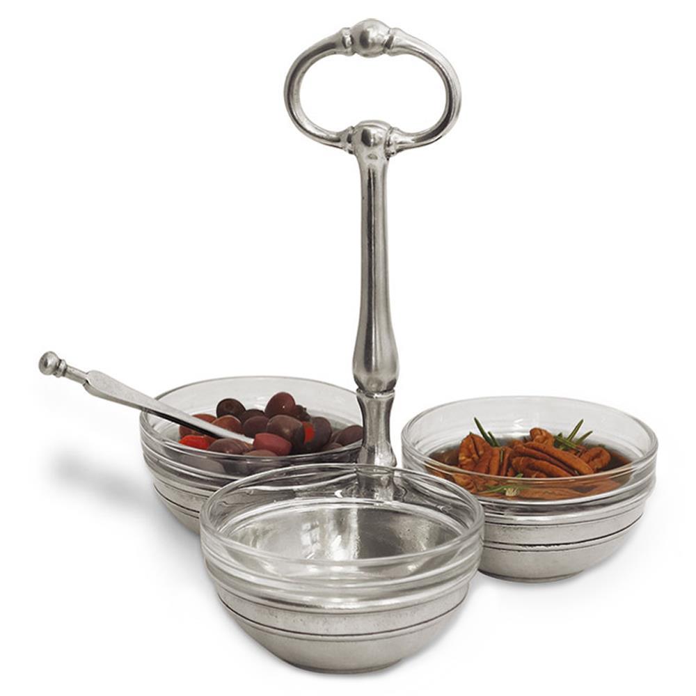 MATCH Modern Clear Glass 3 Section Pewter Condiment Server