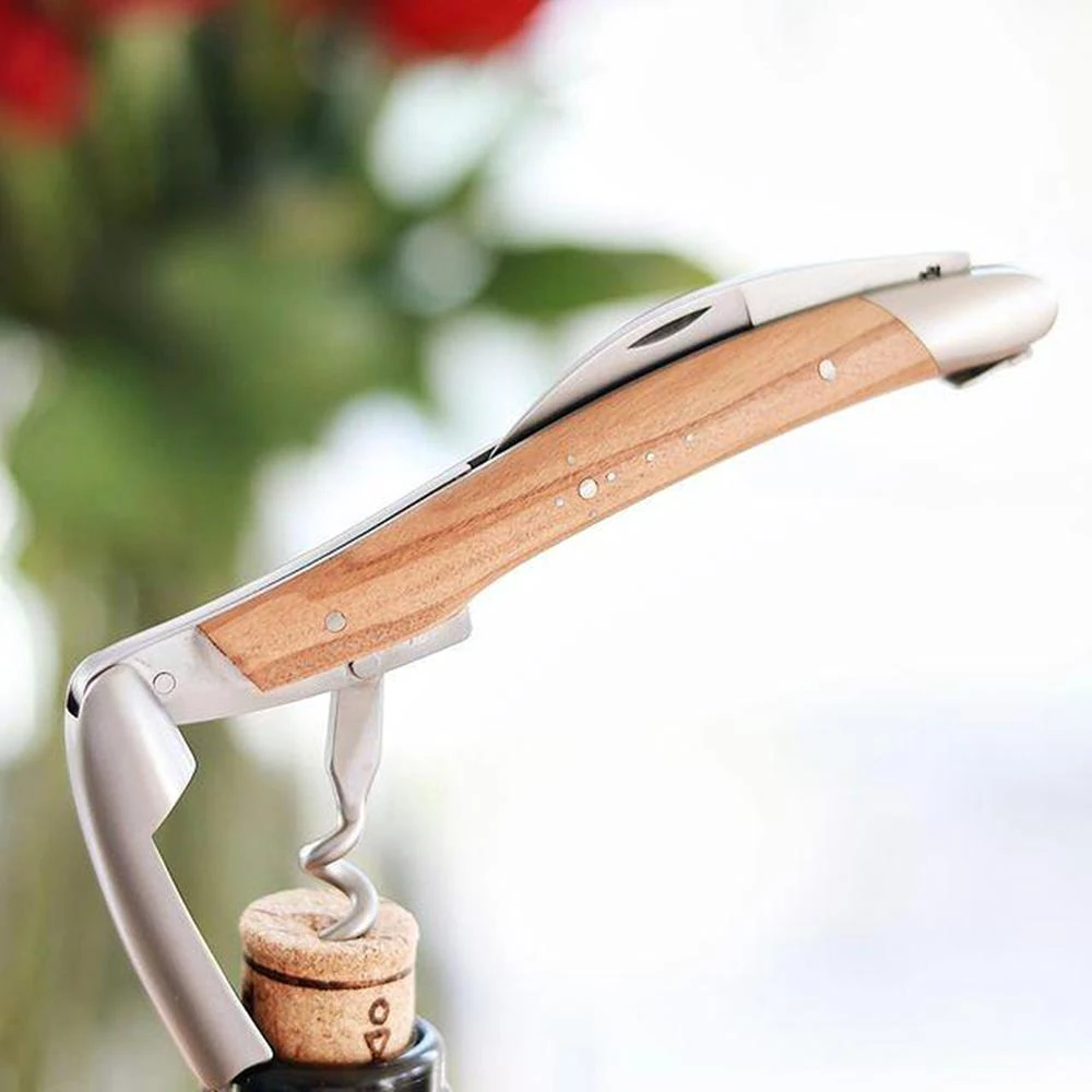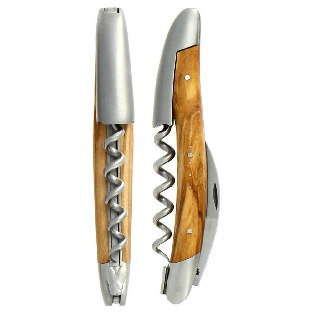 Forge de Laguiole Modern Silver Stainless Steel Olive Wood Handle Corkscrew