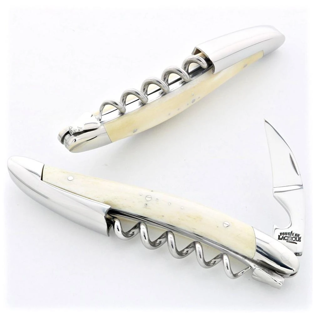 Forge de Laguiole Modern Silver Stainless Steel Bone Handle Corkscrew