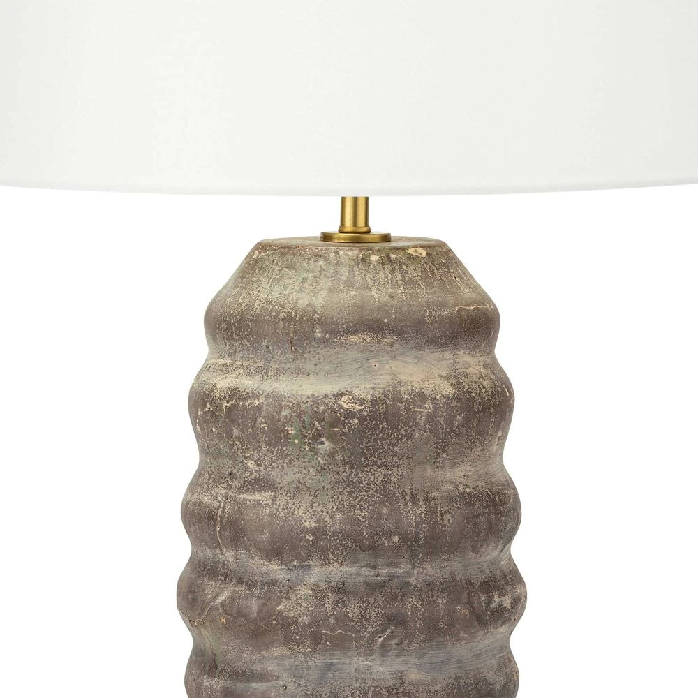 • Vivian Industrial Loft Round Beige Linen Shade Grey Concrete Table Lamp|Kathy Kuo Home