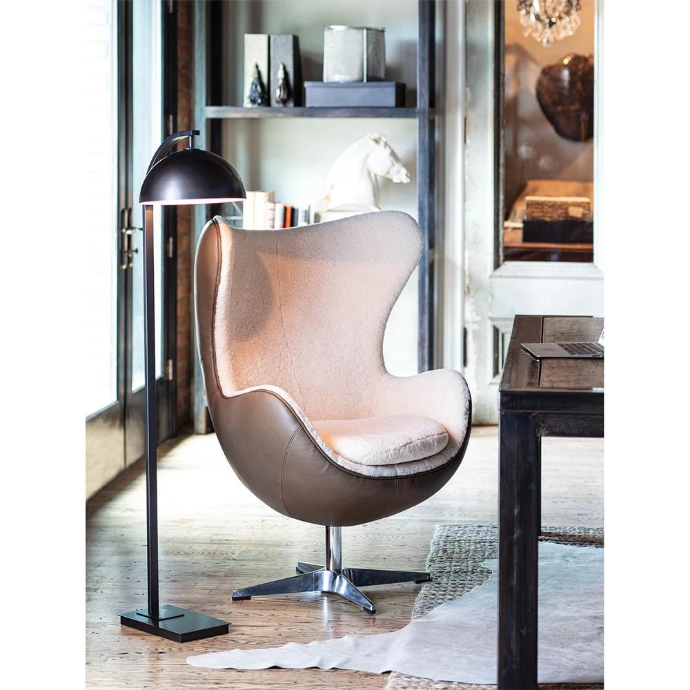 • Leila Mid-Century Bronze Iron Beige Fabric Shade Floor Lamp|Kathy Kuo Home