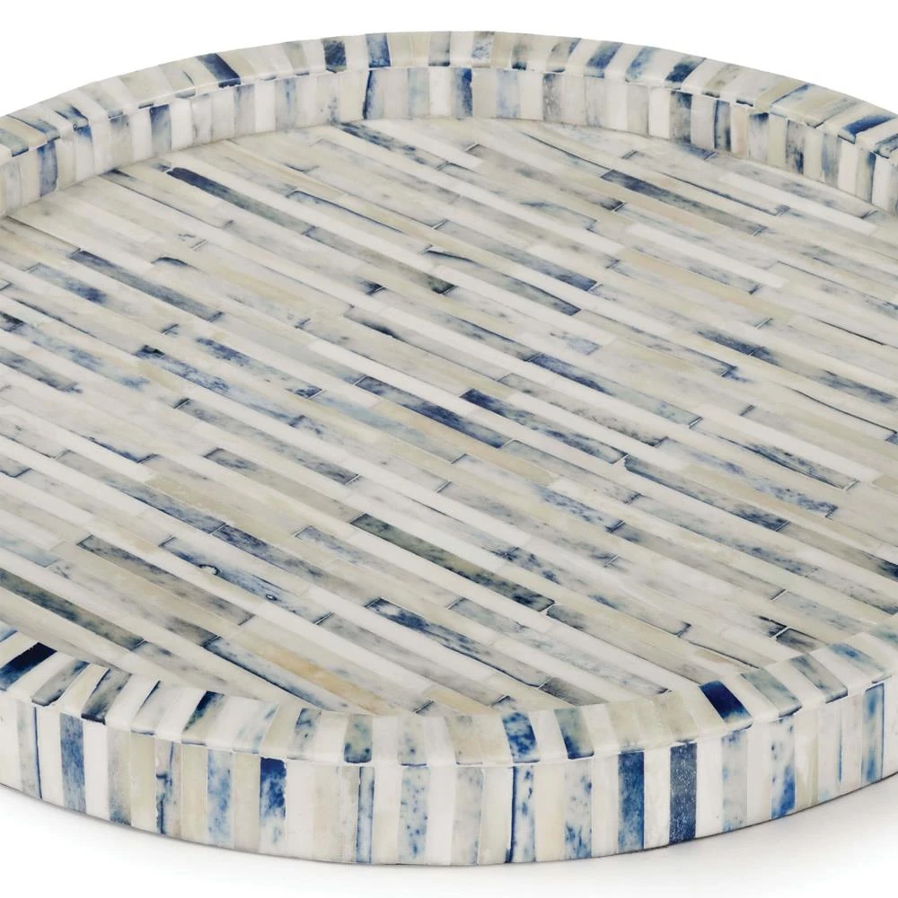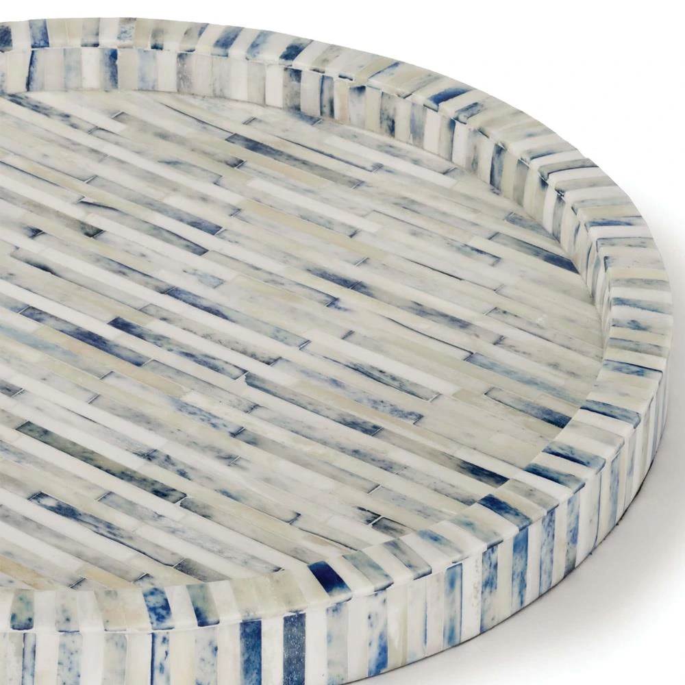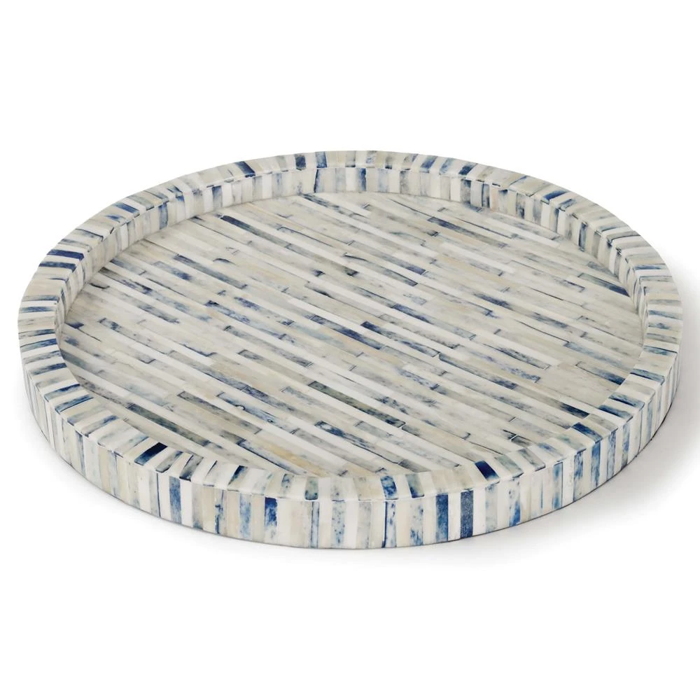 • Amelienne Coastal Beach Grey Mother of Pearl Round Decorative Tray|Kathy Kuo Home