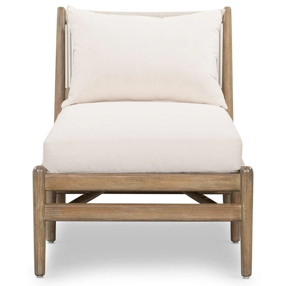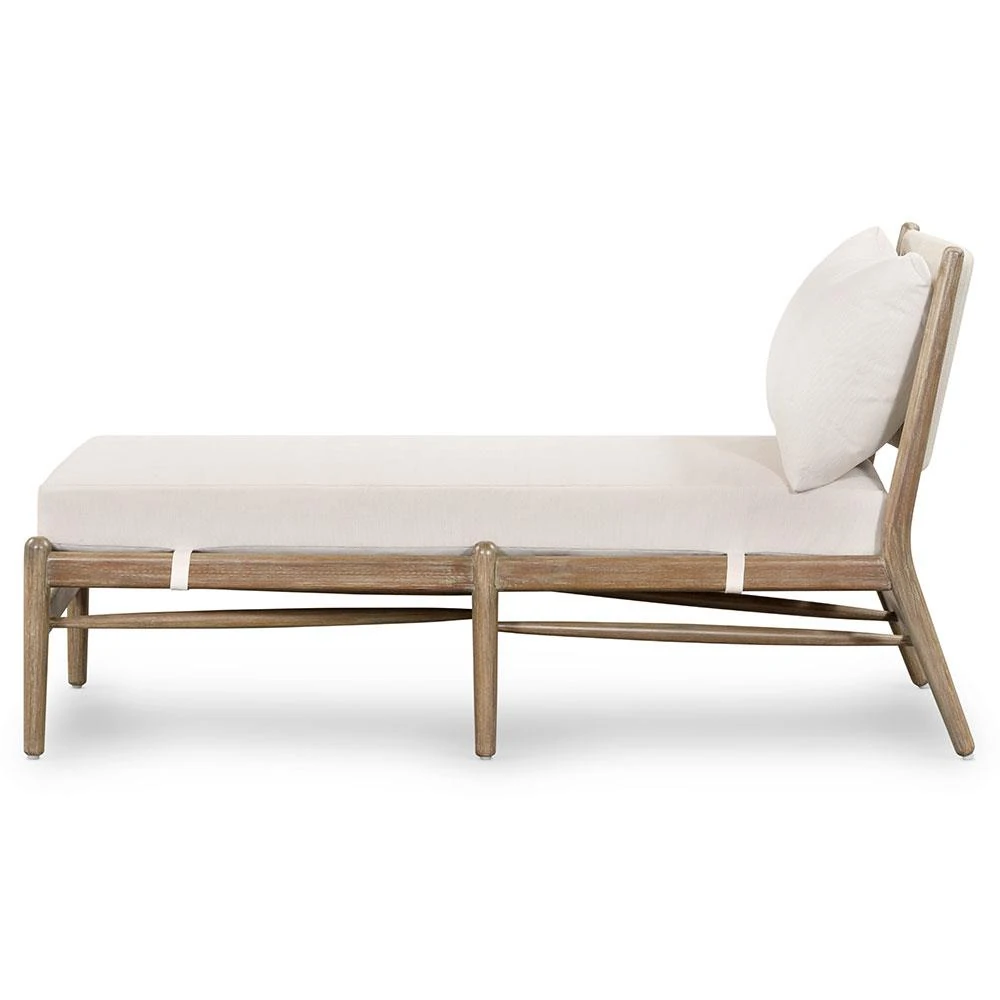 Rose Coastal Beach White Upholstered Brown Wood Frame Outdoor Chaise