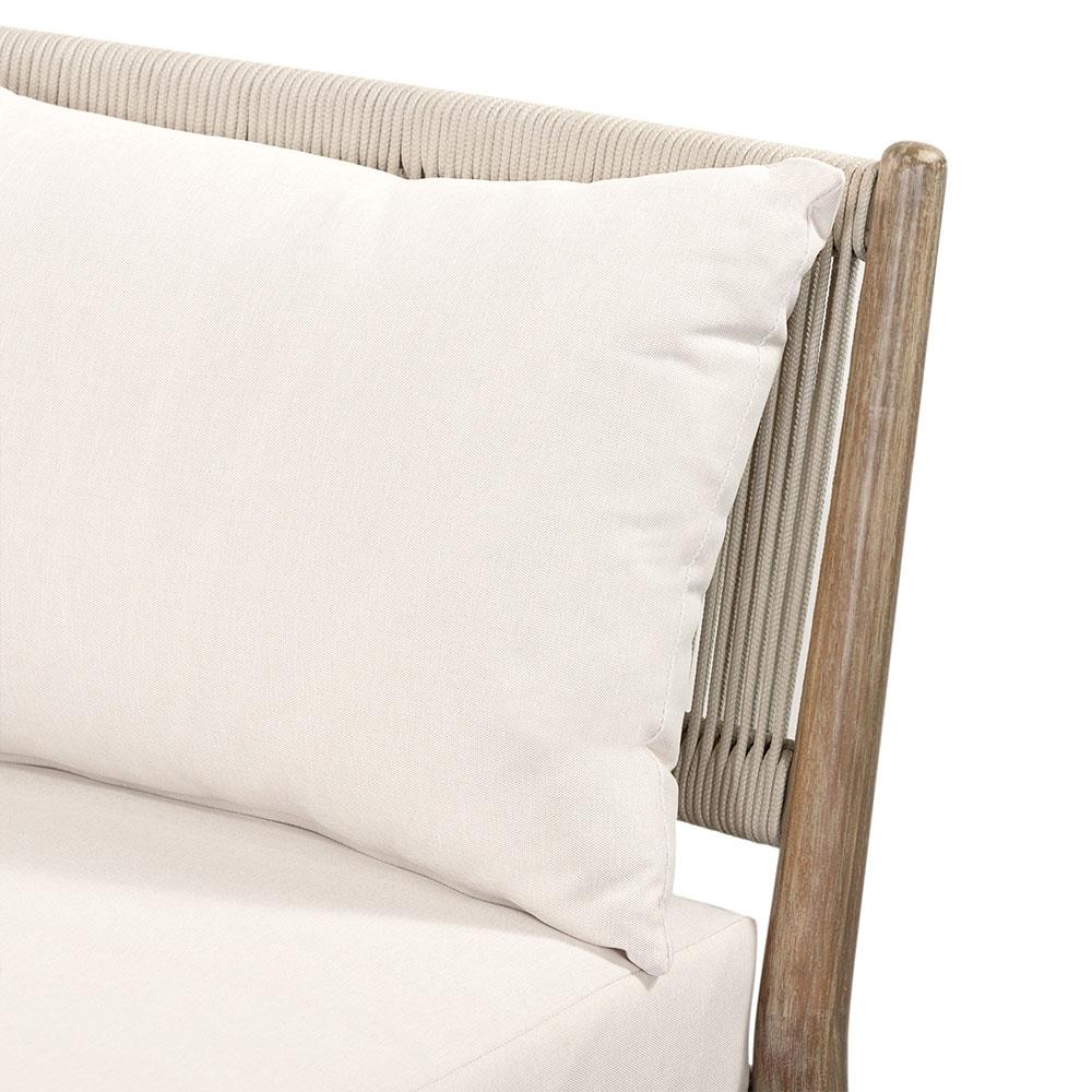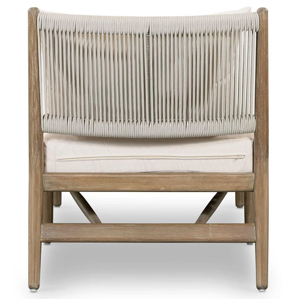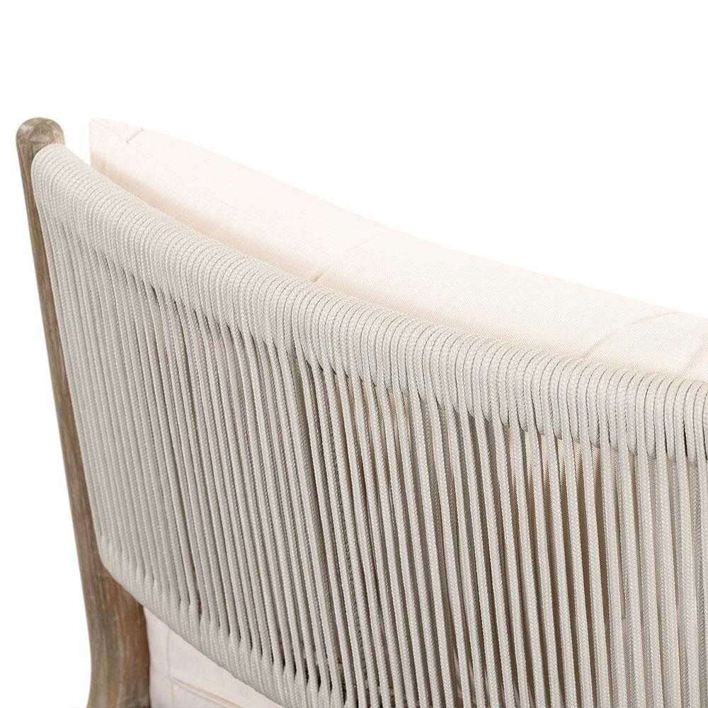 Rose Coastal Beach Off White Upholstered Rope Back Wood Outdoor Lounge Chair