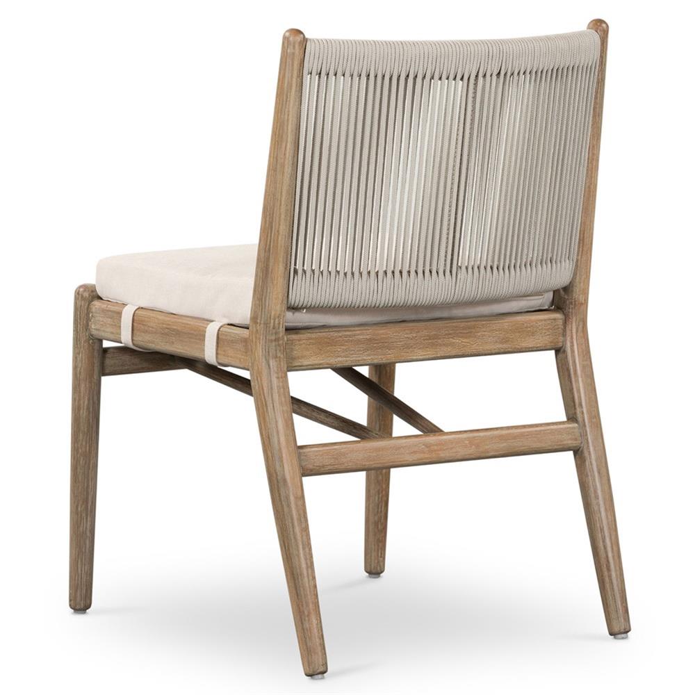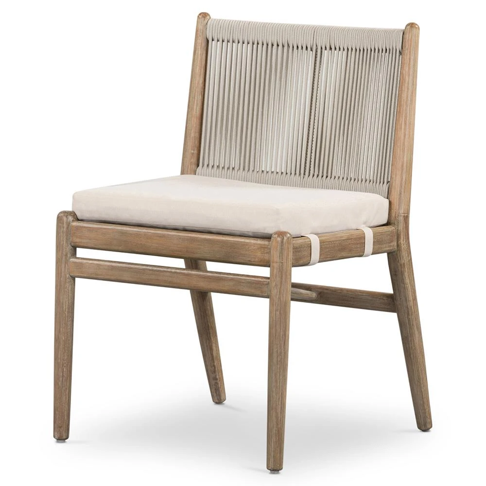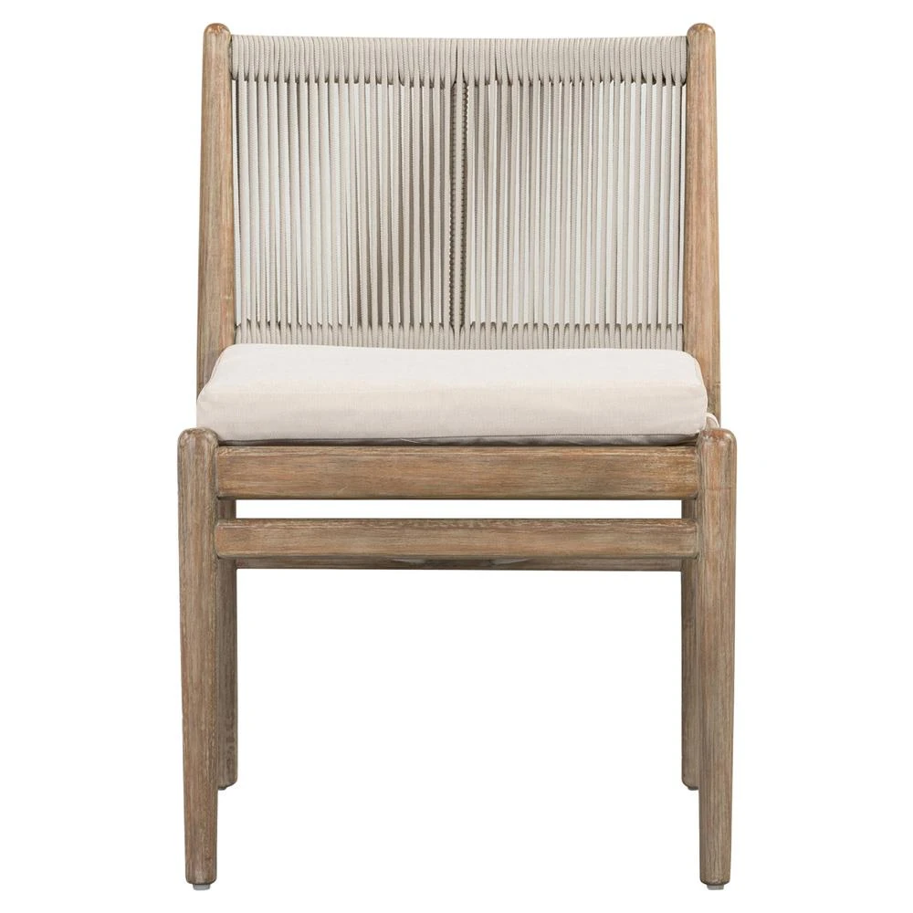 Rose Coastal Off White Upholstered Woven Rope Wood Outdoor Dining Side Chair