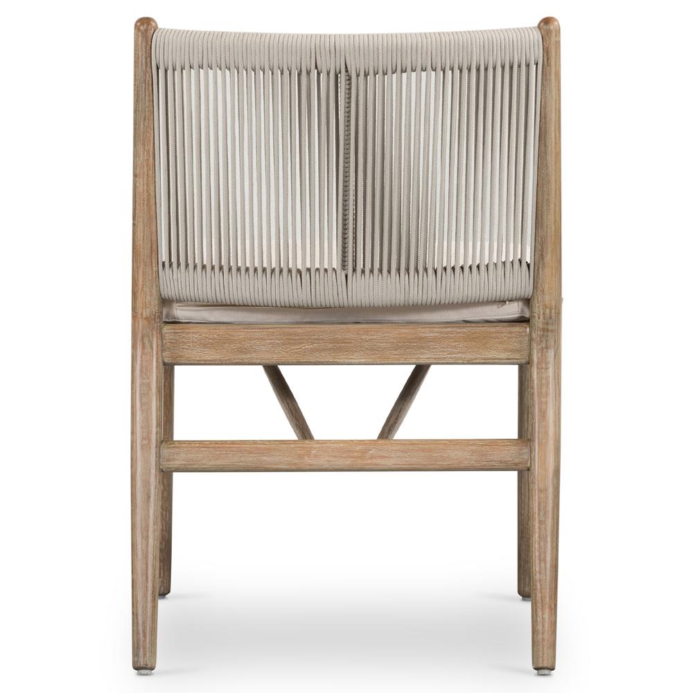 Cheryl Modern Light Grey Cushion Woven Rope Natural Teak Outdoor Dining Arm Chair