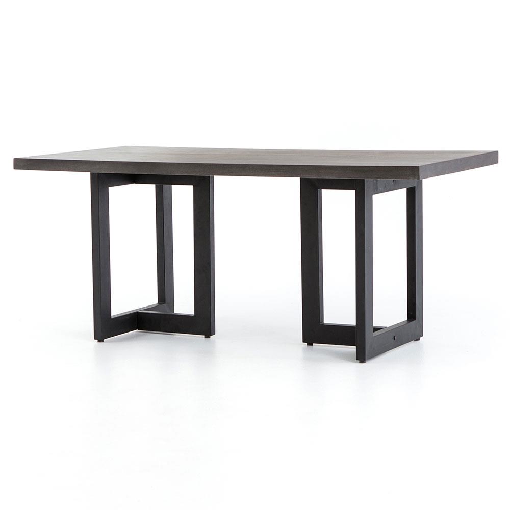 Maceo Modern Classic Grey Stone Top Black Iron Base Outdoor Dining Table - 78.75"W