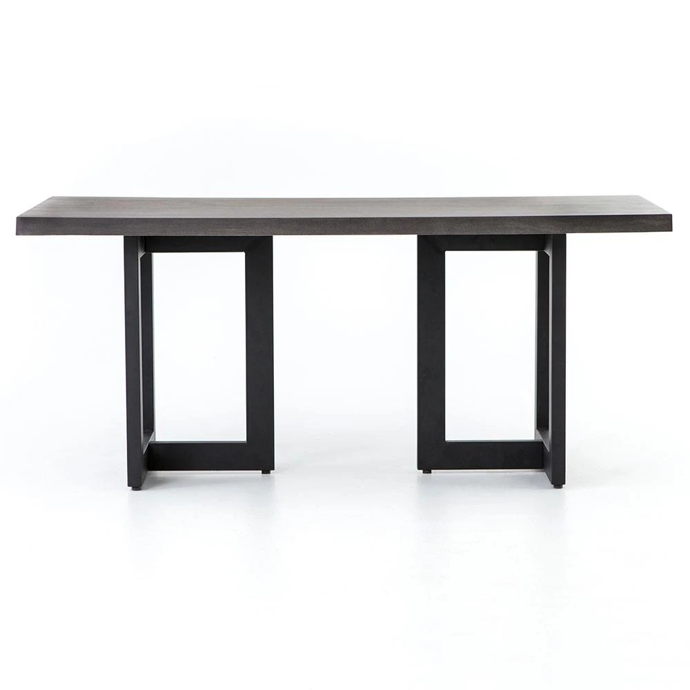 • Gino Industrial Black Concrete Iron Double Pedestal Outdoor Dining Table - 83"W|Kathy Kuo Home