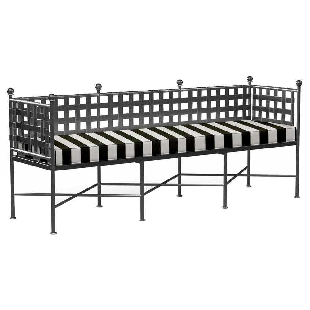 Aurore White Black Stripe Cabana Cushion Metal Outdoor Garden Bench