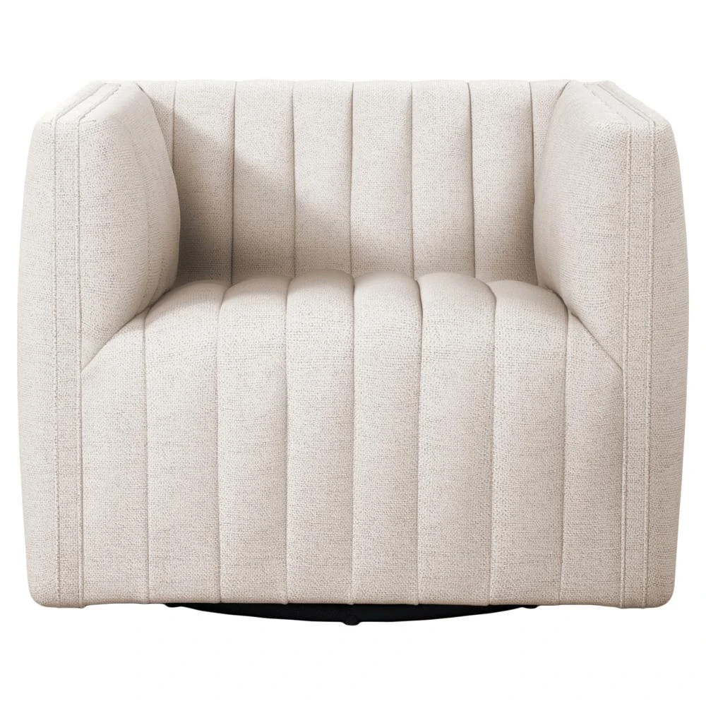 Leo Mid Century Modern White Upholstered Swivel Tufted Occasional Chair