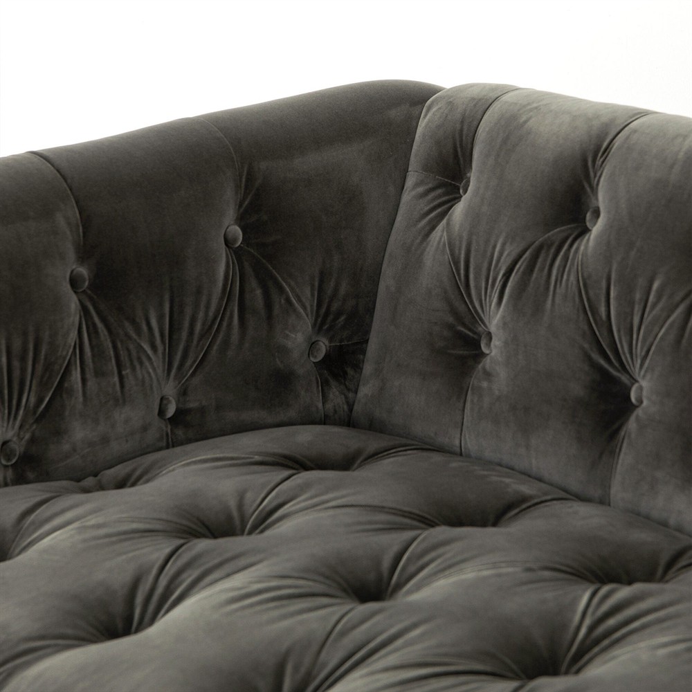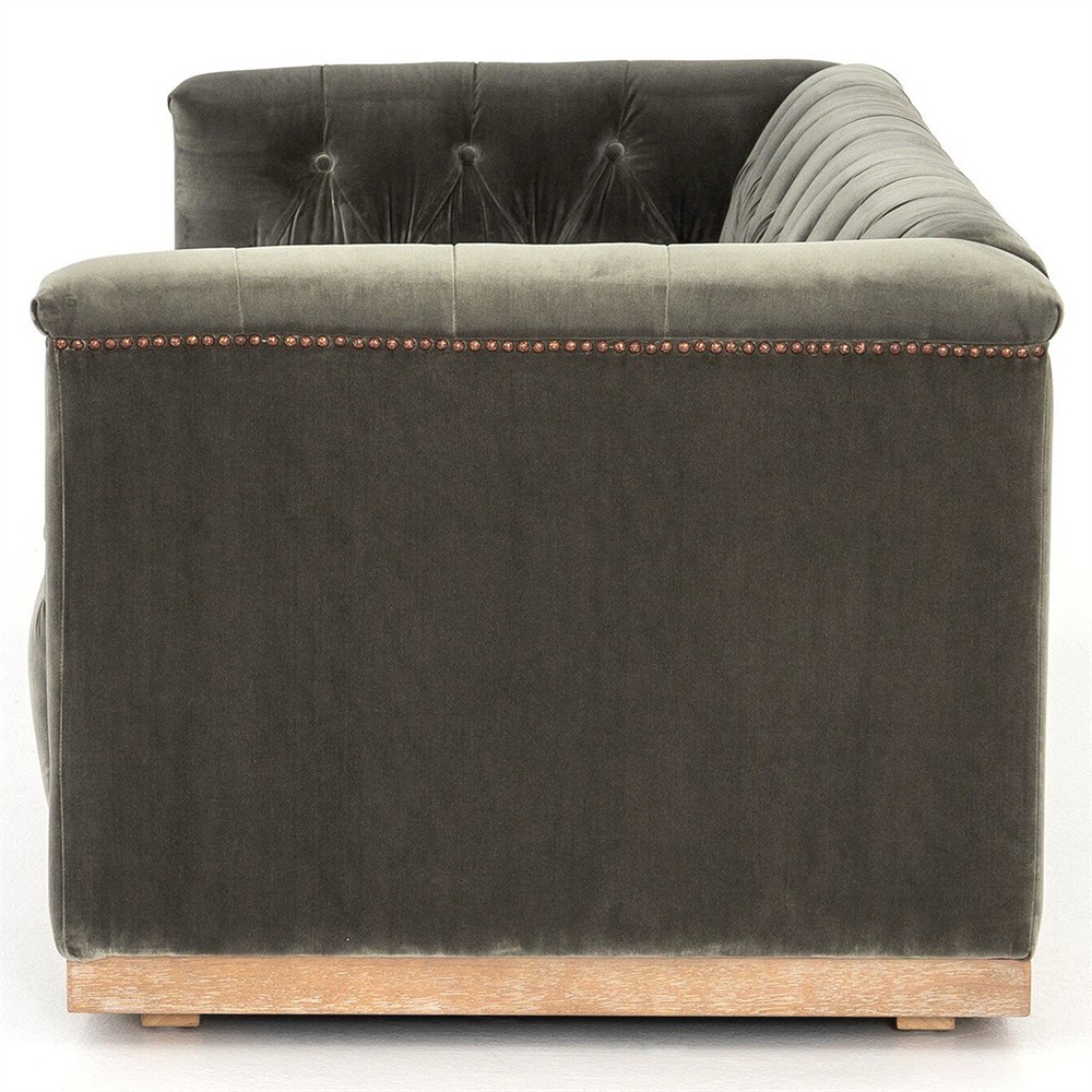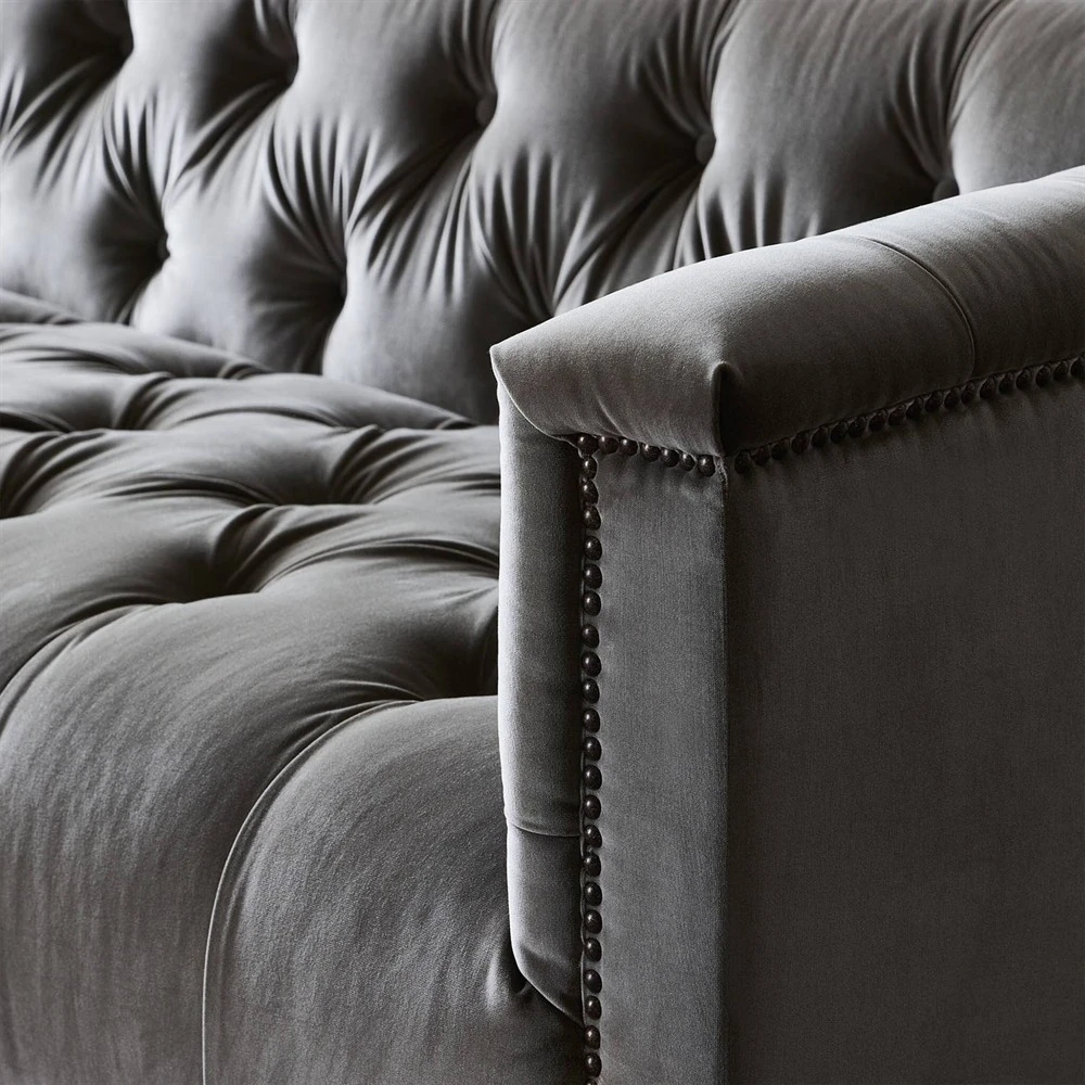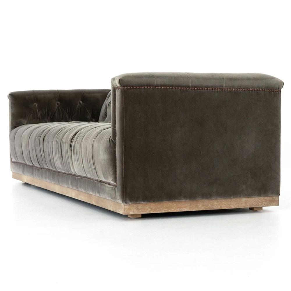 Emmy Rustic Grey Upholstered Velvet Tufted Nailhead Trim Sofa - Large - 95"W