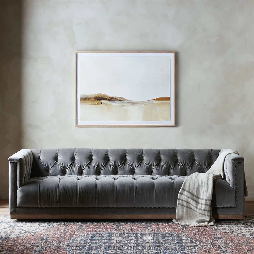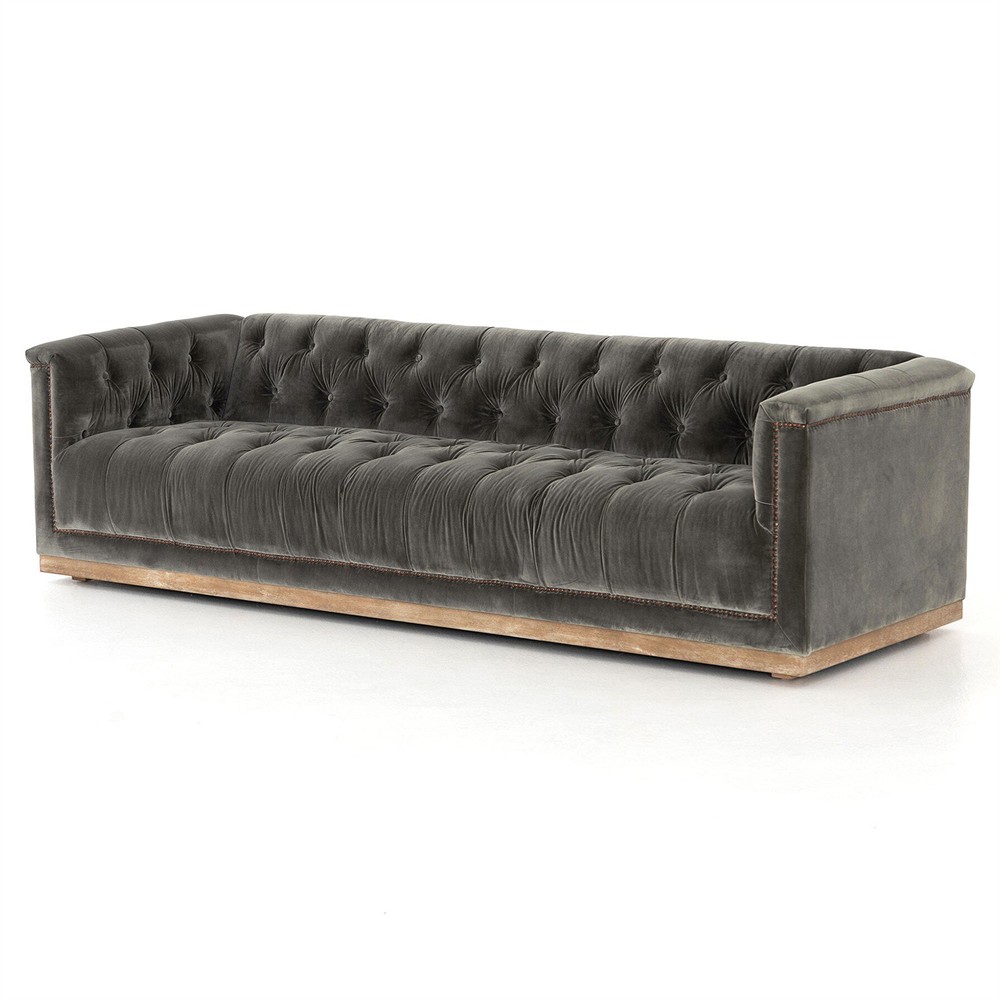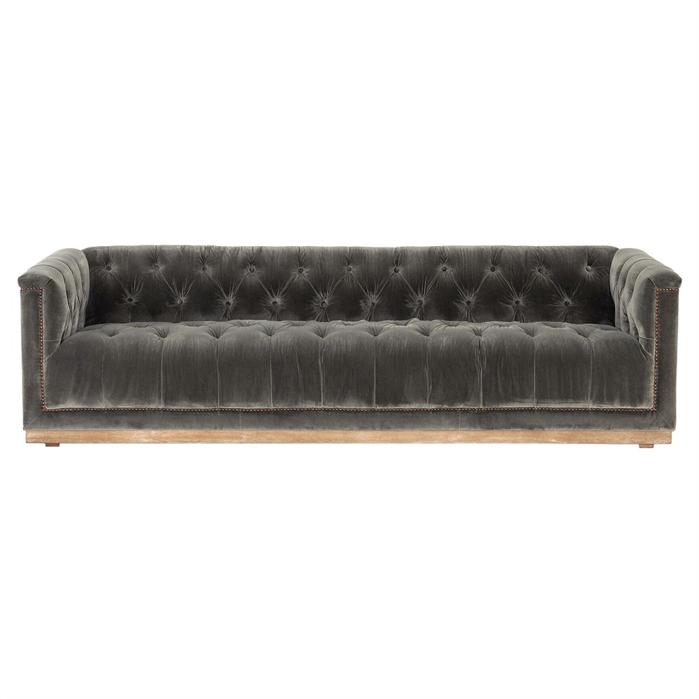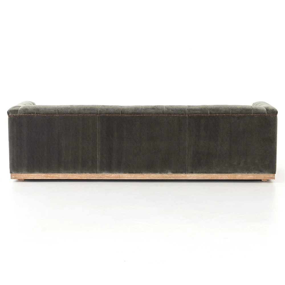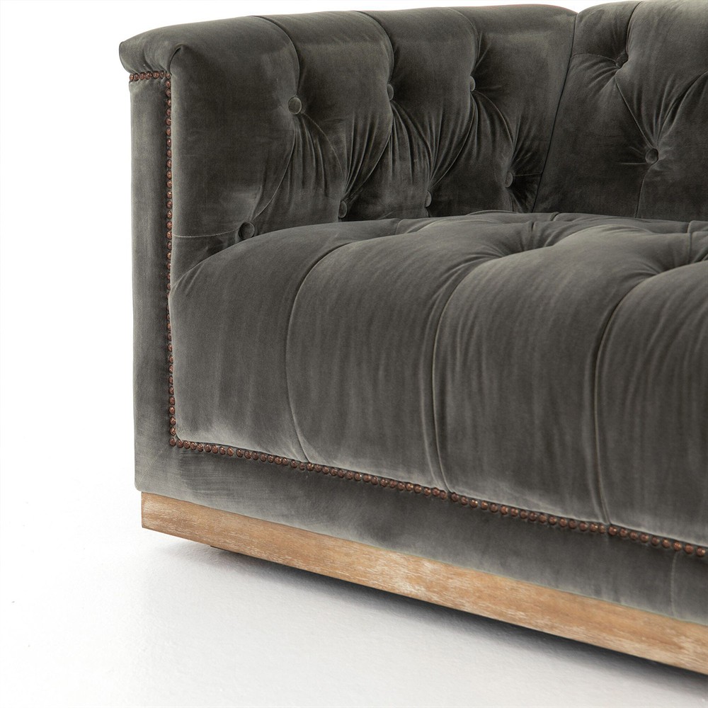 Emmy Rustic Grey Upholstered Velvet Tufted Nailhead Trim Sofa - Large - 95"W