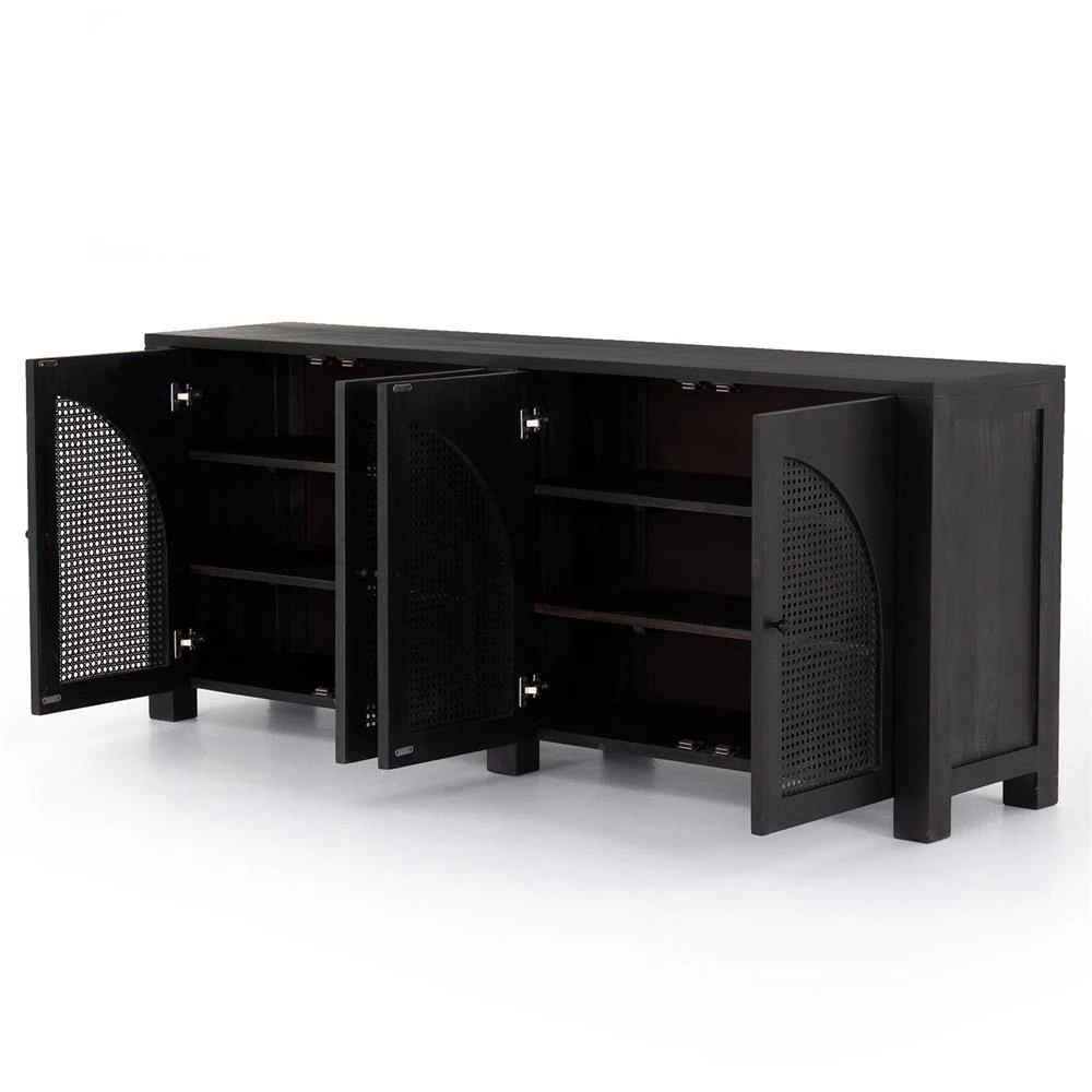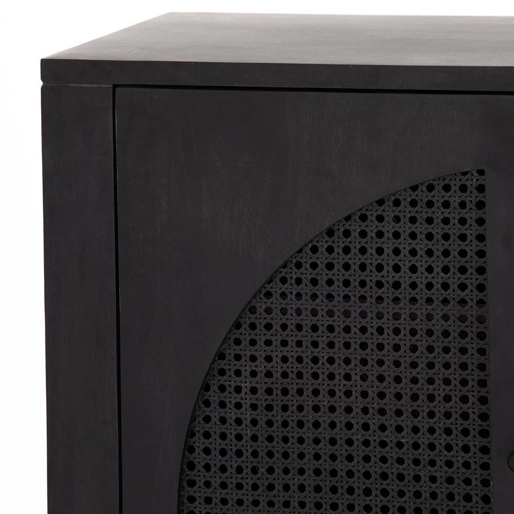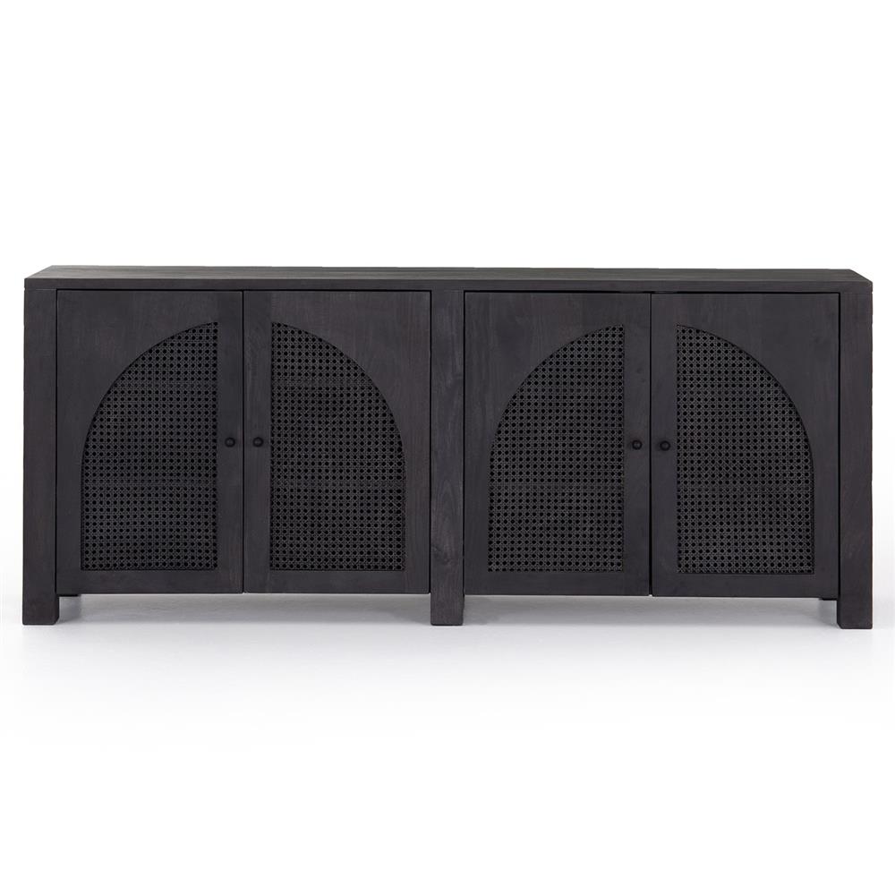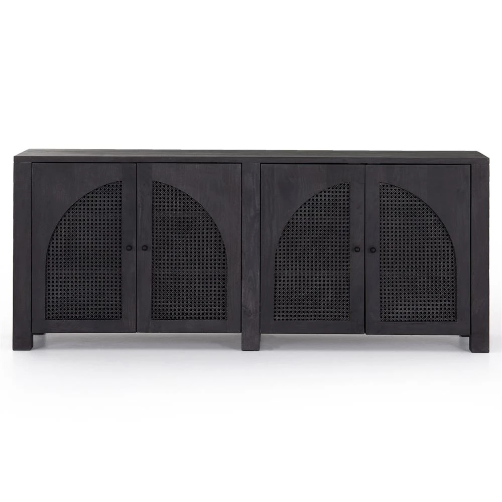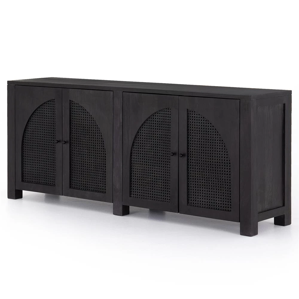 Kashton Mid Century Black Wash Mango Wood Arched Cane 4 Door Sideboard
