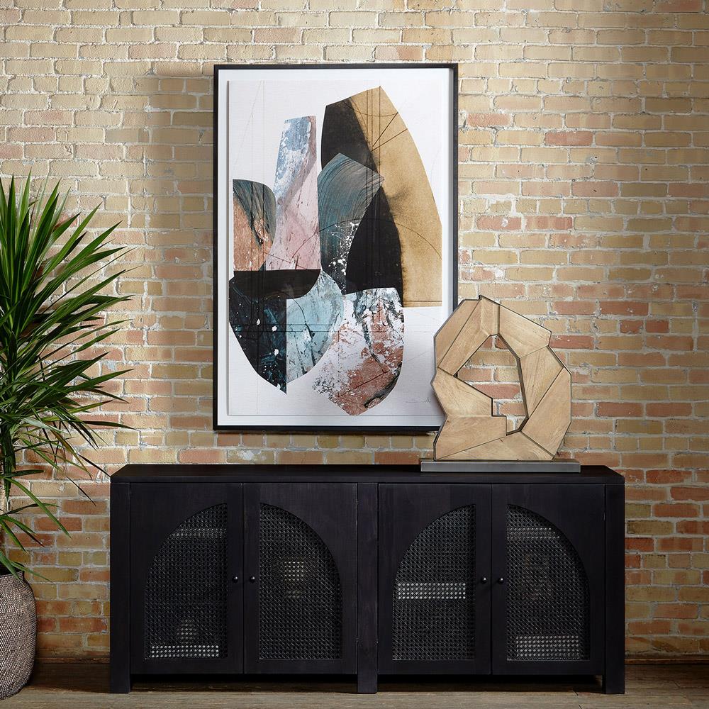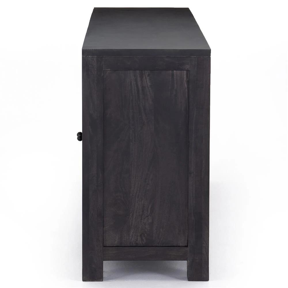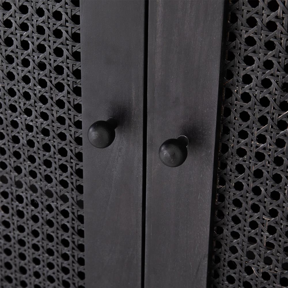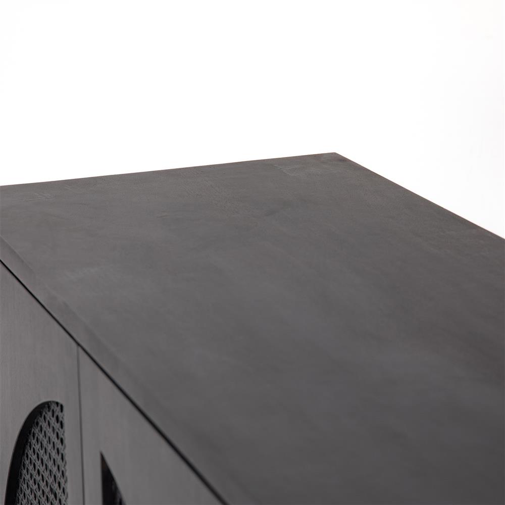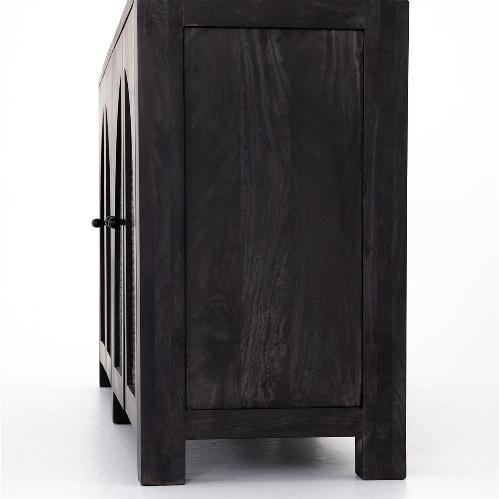Kashton Mid Century Black Wash Mango Wood Arched Cane 4 Door Sideboard