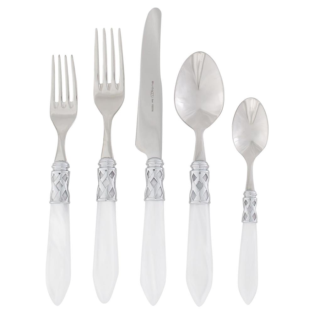 Aladdin Brilliant Modern White Acrylic 5 Piece Flatware Place Setting