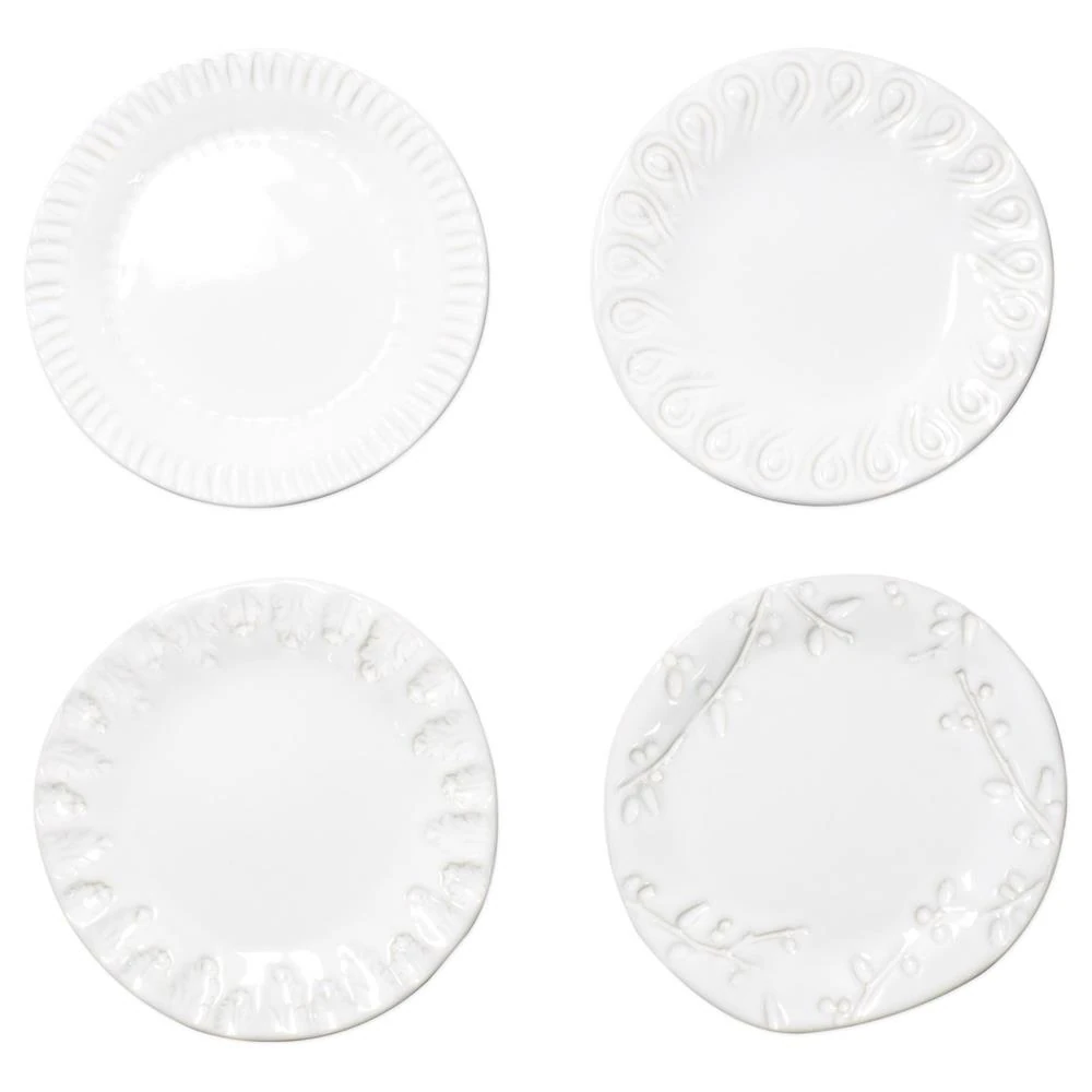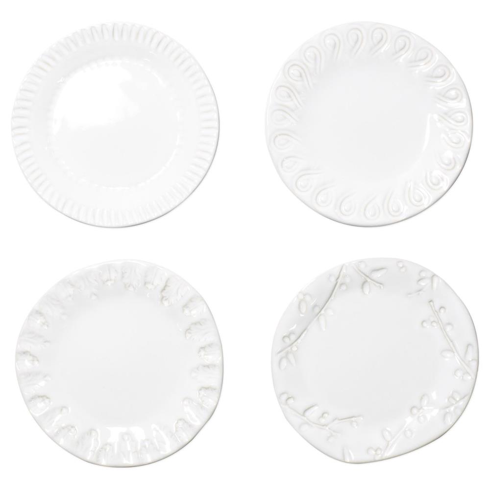By Vietri. Our set of 4 Vietri Incanto Stone Modern White Stoneware Assorted Canape Plates is the perfect flourish of sophistication fo ... more