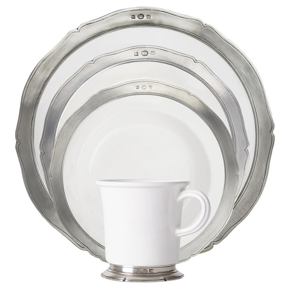 CONFIGURE YOUR MATCH VIVIANA FRENCH SILVER PEWTER RIM WHITE CERAMIC DINNERWARE COLLECTION