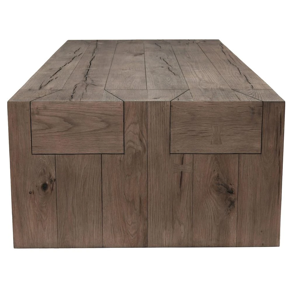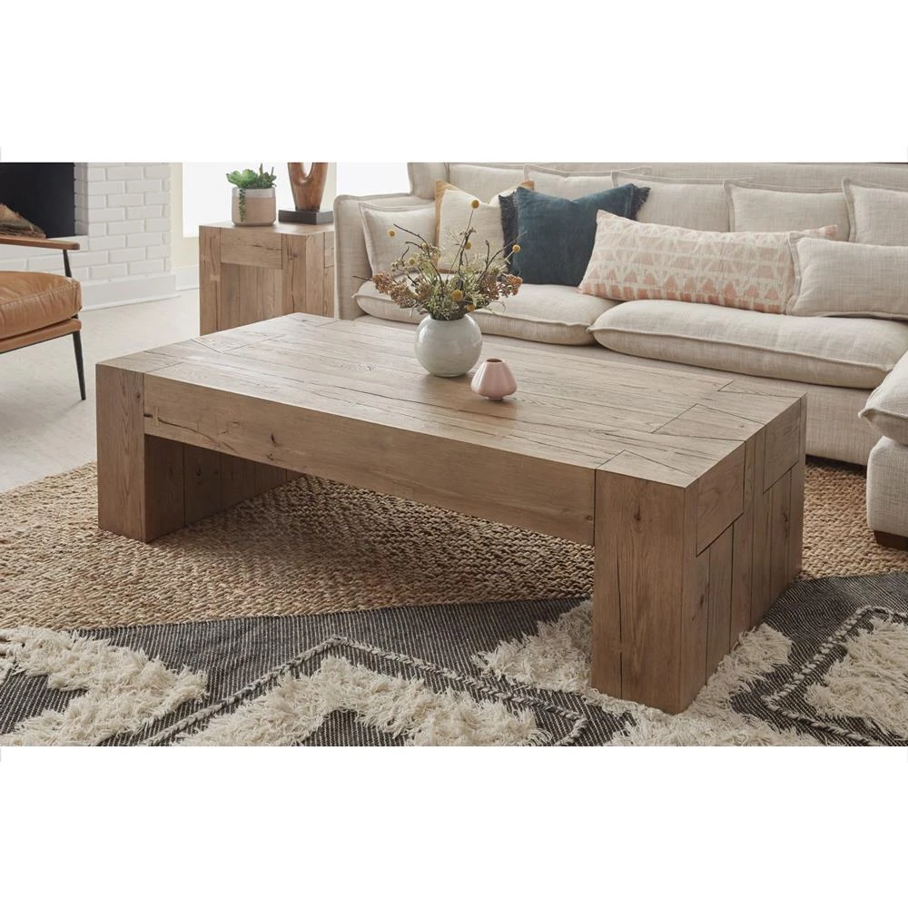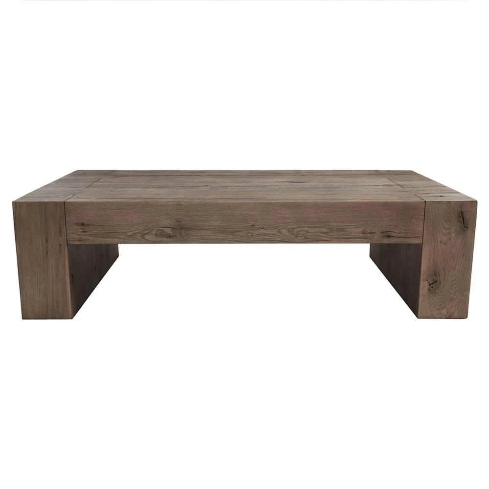• Zyra Coastal Beach Brown Reclaimed Pine Wood Rectangular Coffee Table|Kathy Kuo Home
