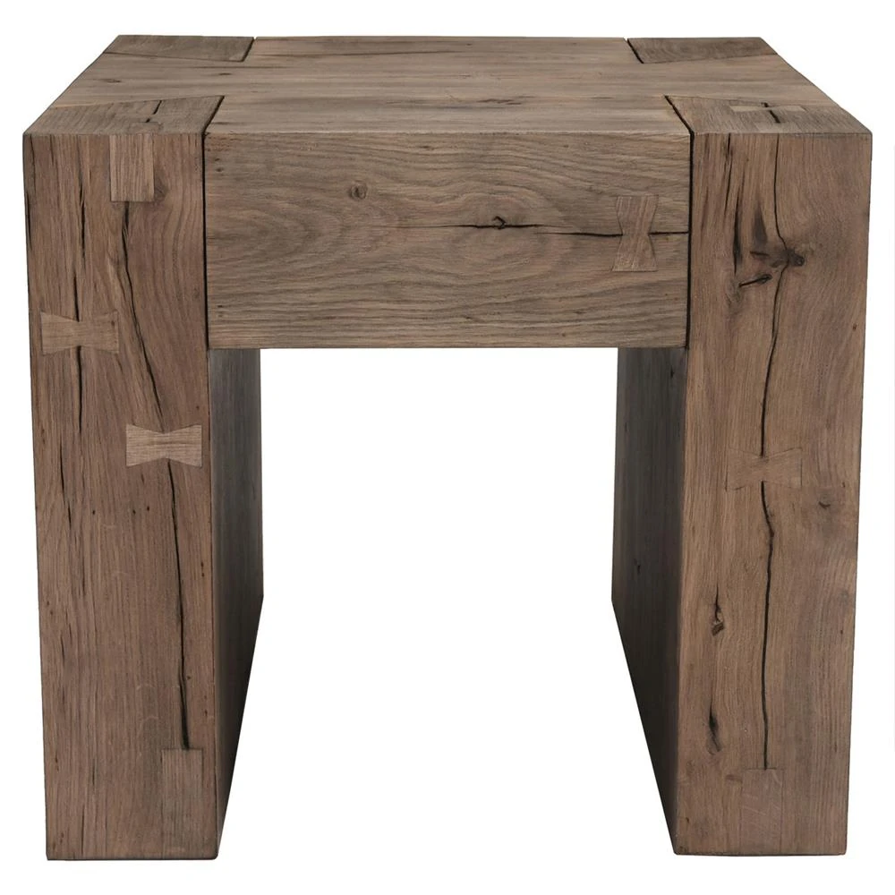 Zyra Coastal Beach Bleached Brown Elm Wood Round Side Table