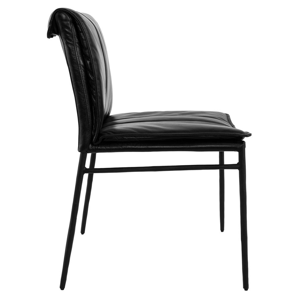 Streamlined design elements are highlighted in the Marissa dining chair. Its black hammered iron frame provides a sturdy base for the j ... more