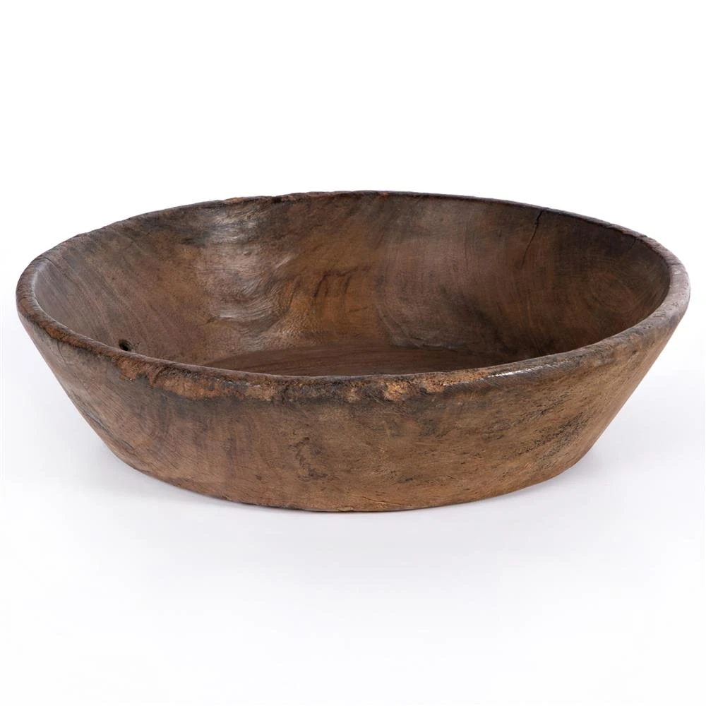• Willow French Country Brown Wood Round Chipatti Decorative Bowl|Kathy Kuo Home