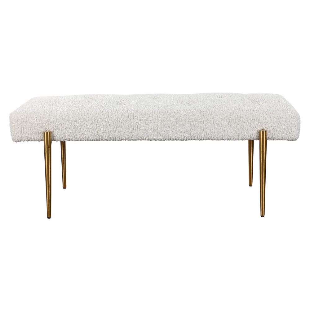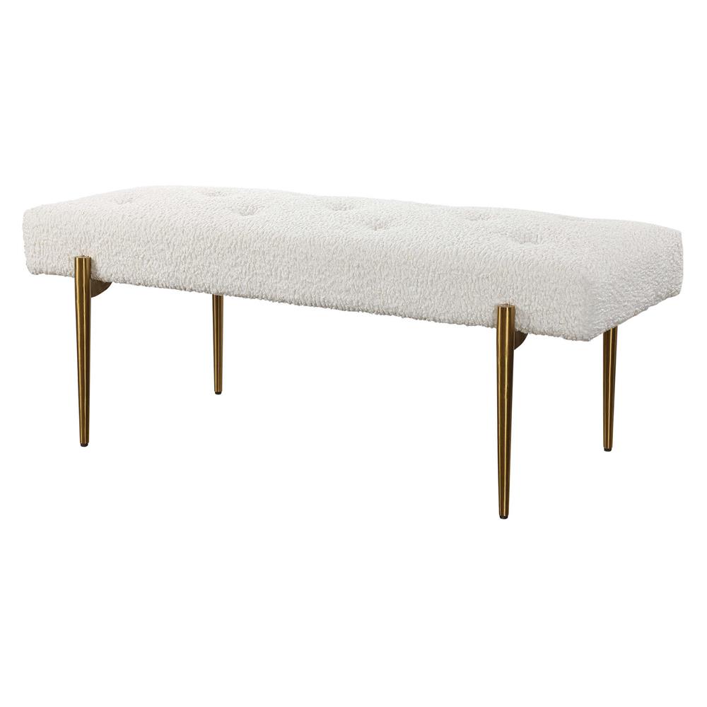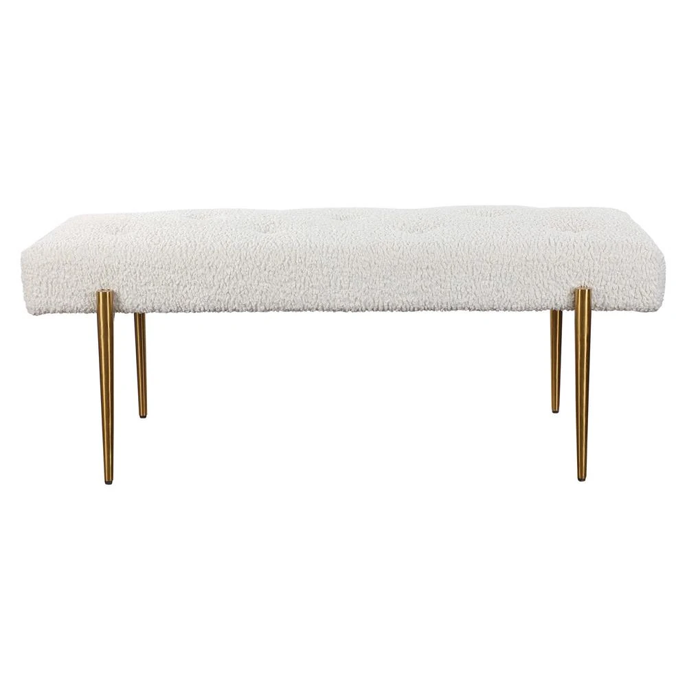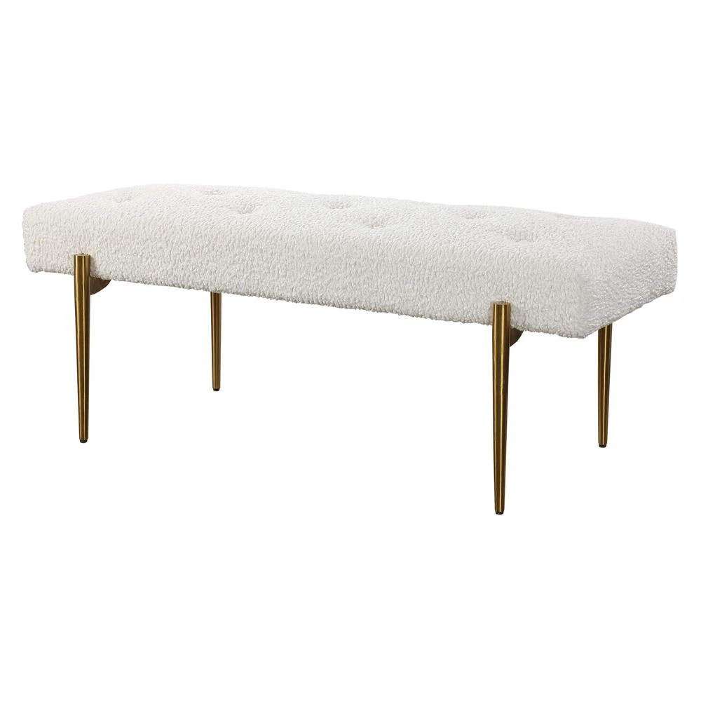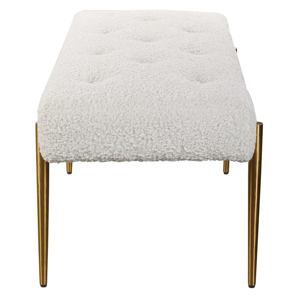 Orion Hollywood Antique Brass Frame White Faux Shearling Tufted Bench