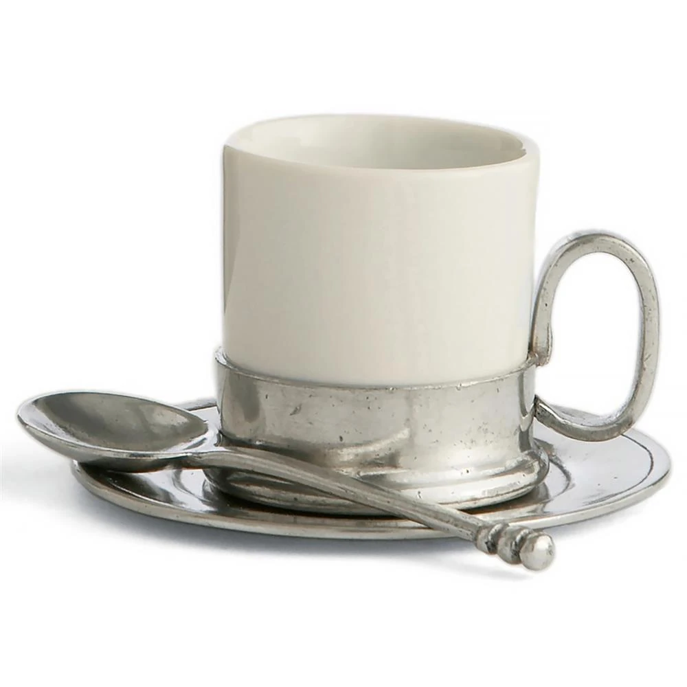 Tuscan French Country White Ceramic Espresso Cup & Saucer Set